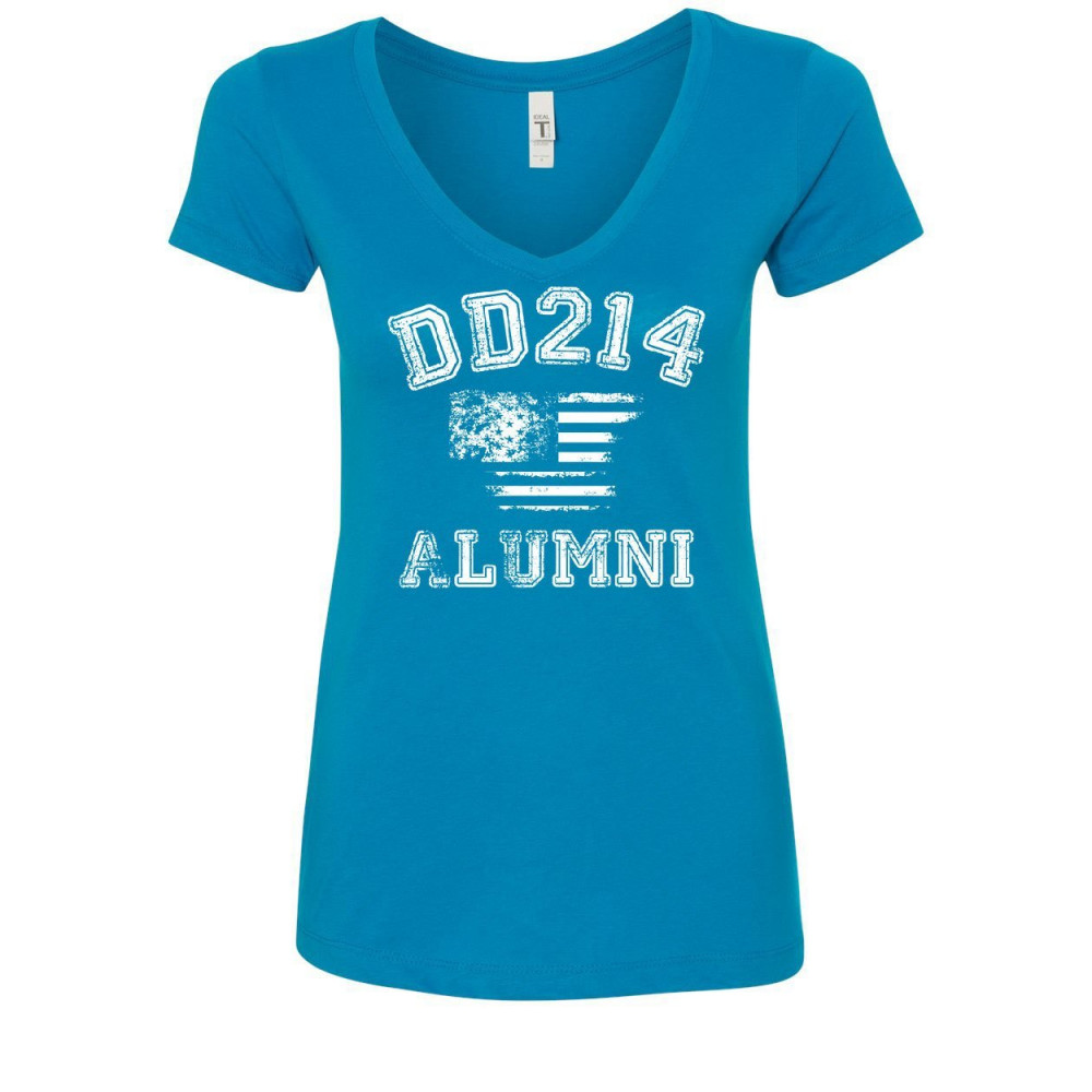 DD214 ALUMNI distressed american flag women's v-neck t-shirt military veteran turquoise