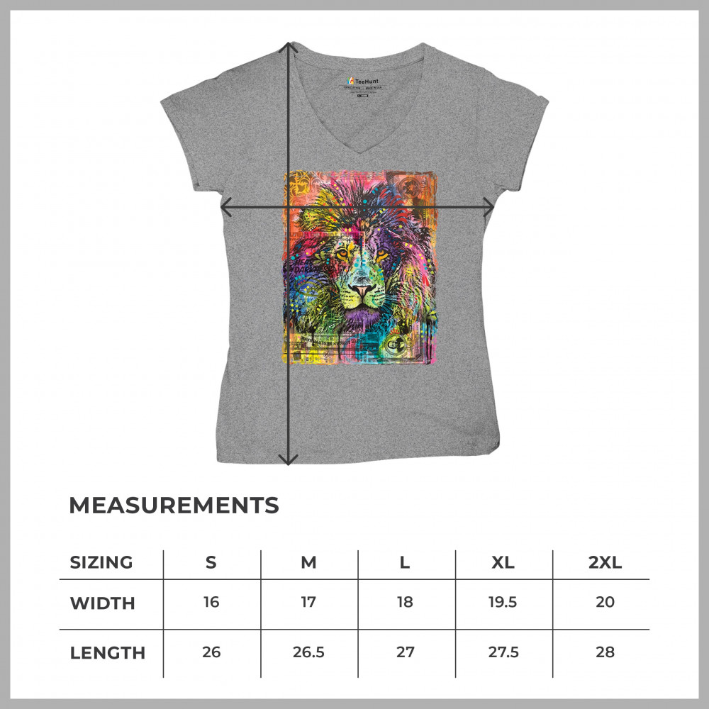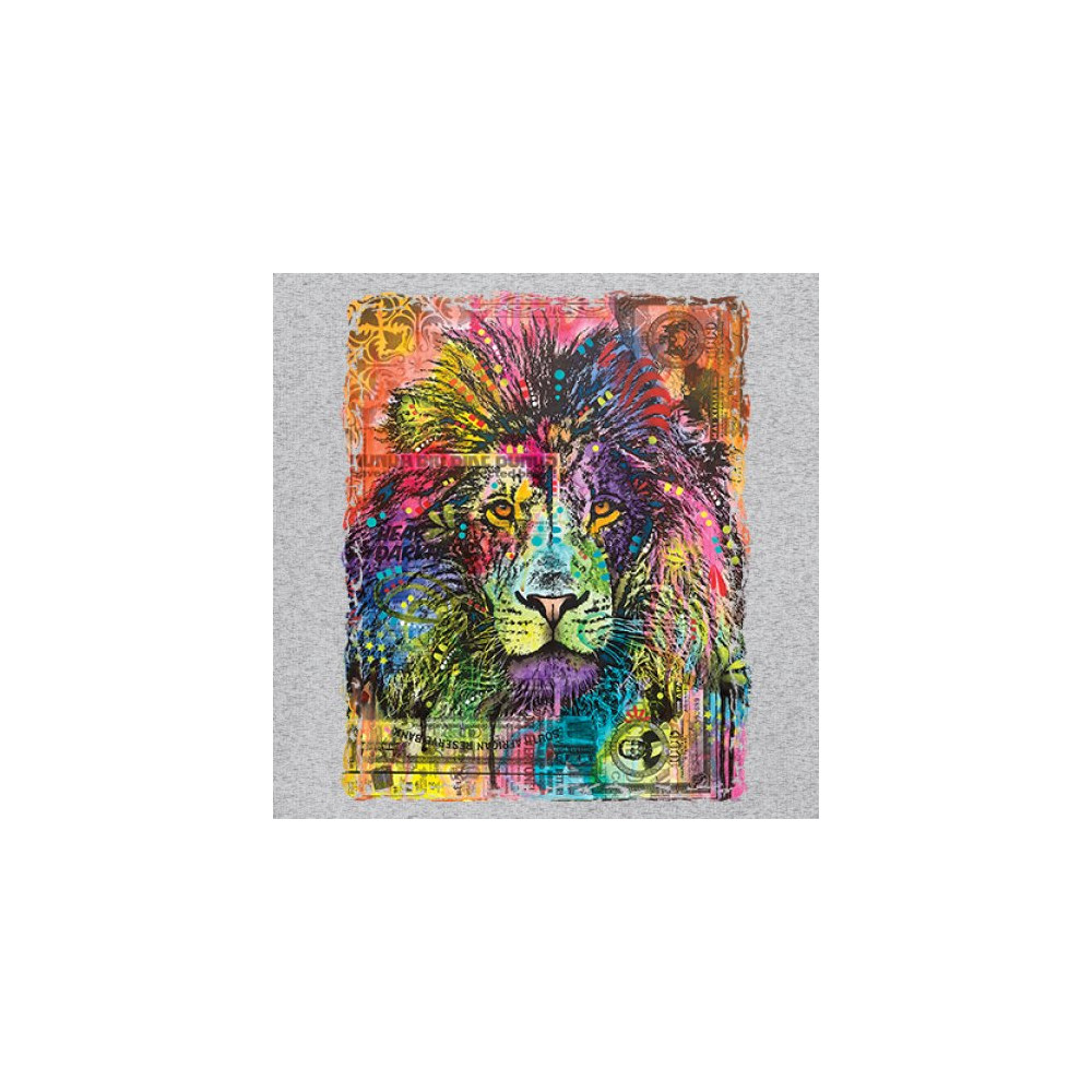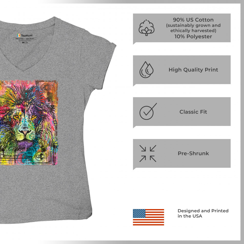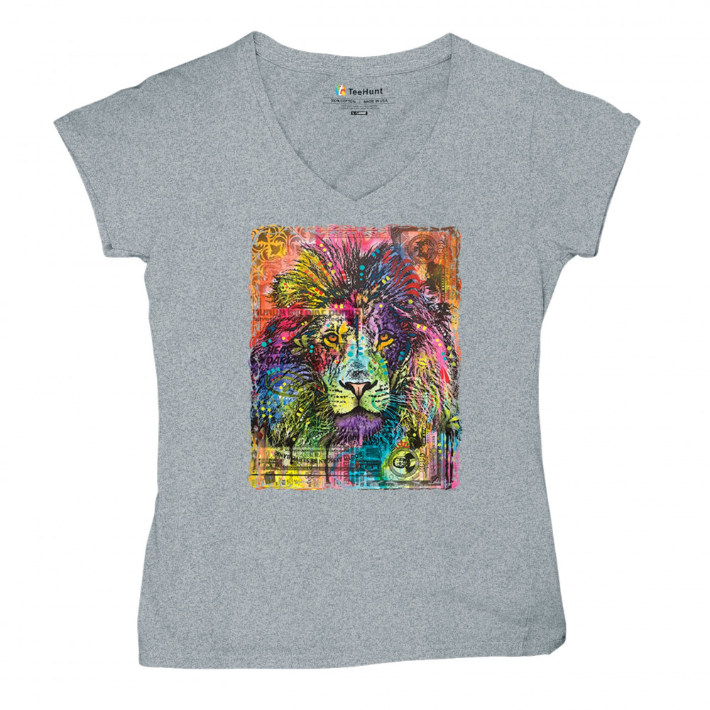 DEAN RUSSO COLORFUL LION HEAD women's v-neck t-shirt wild life king roar tee gray
