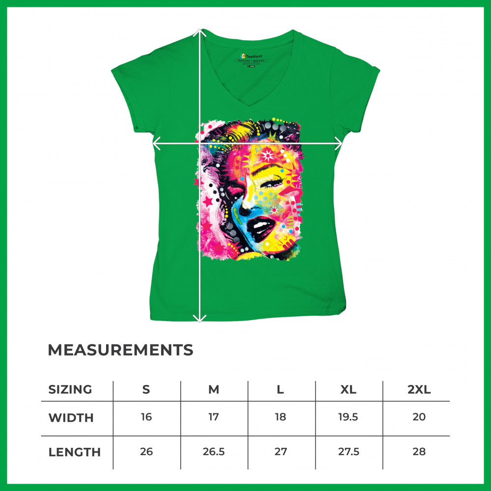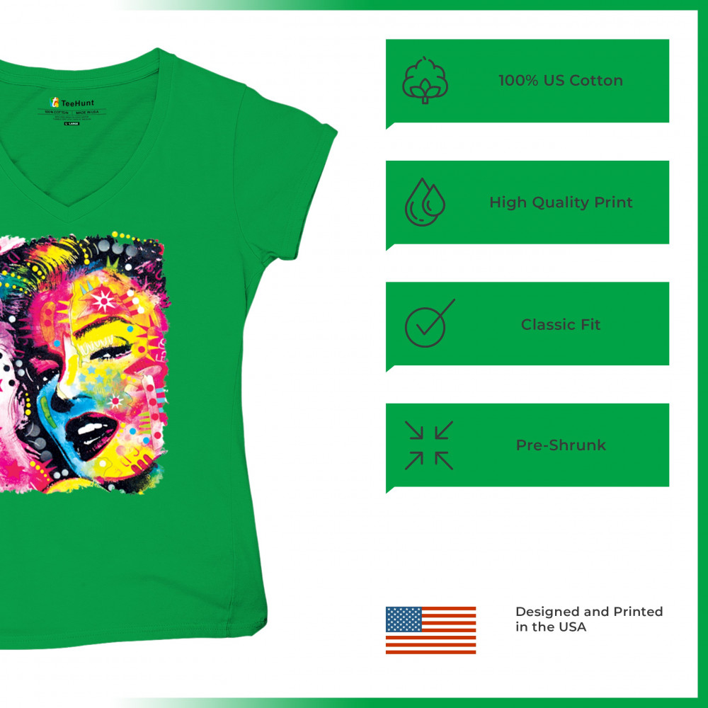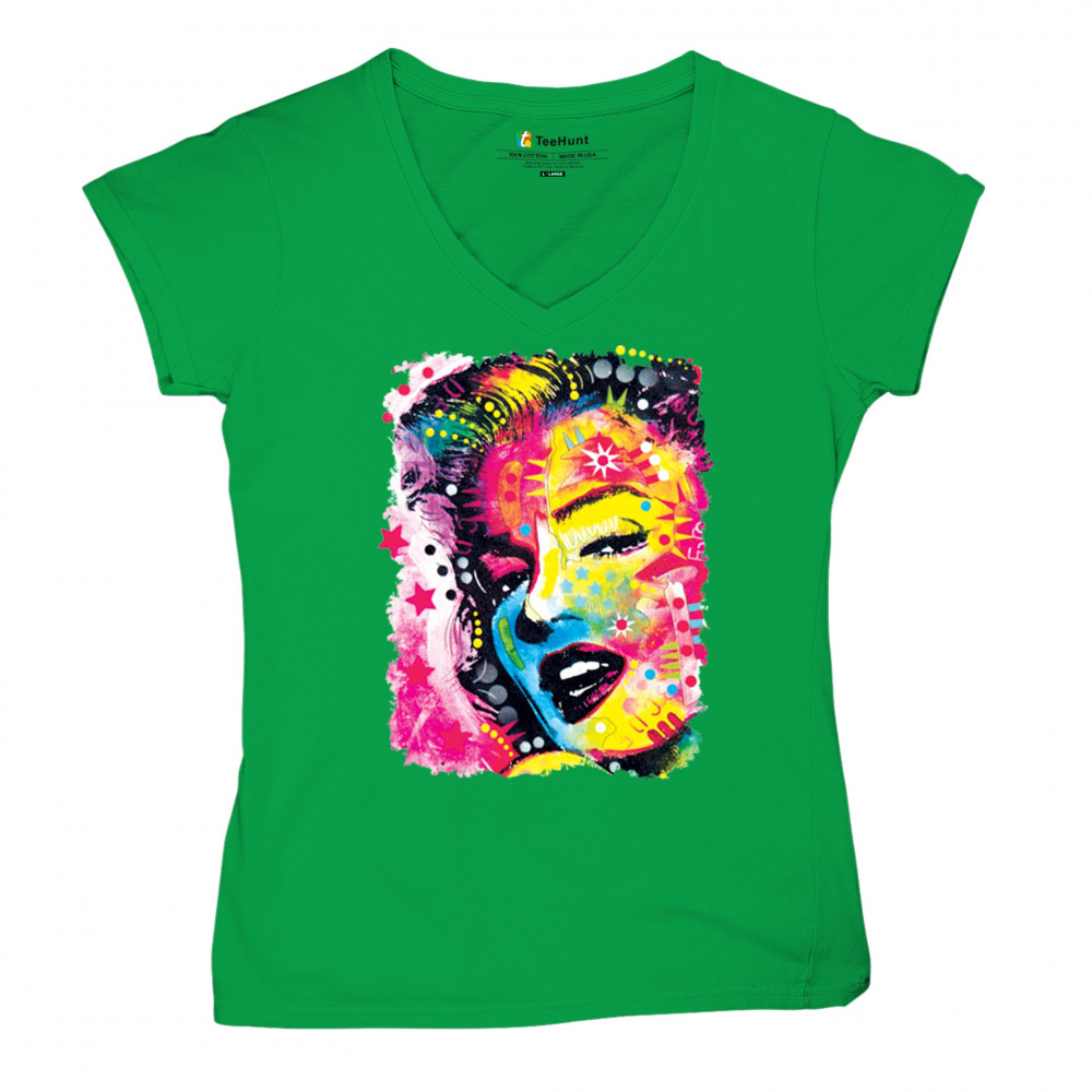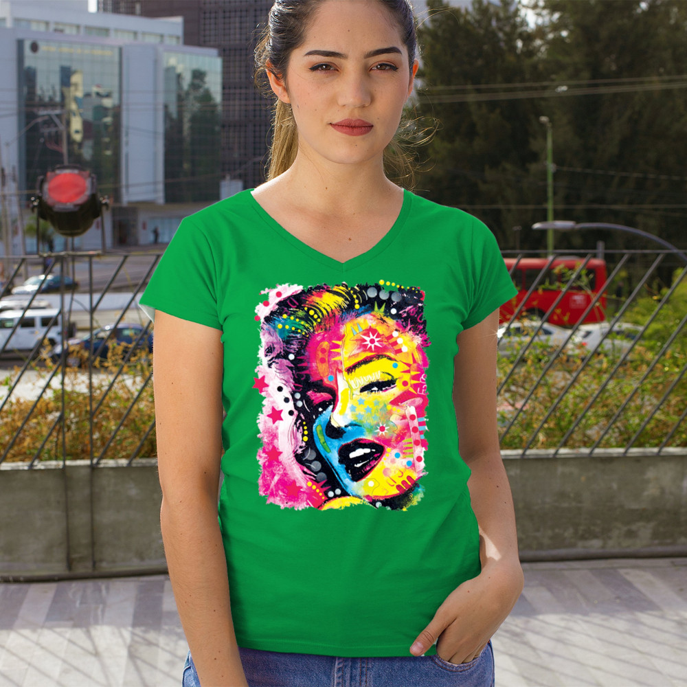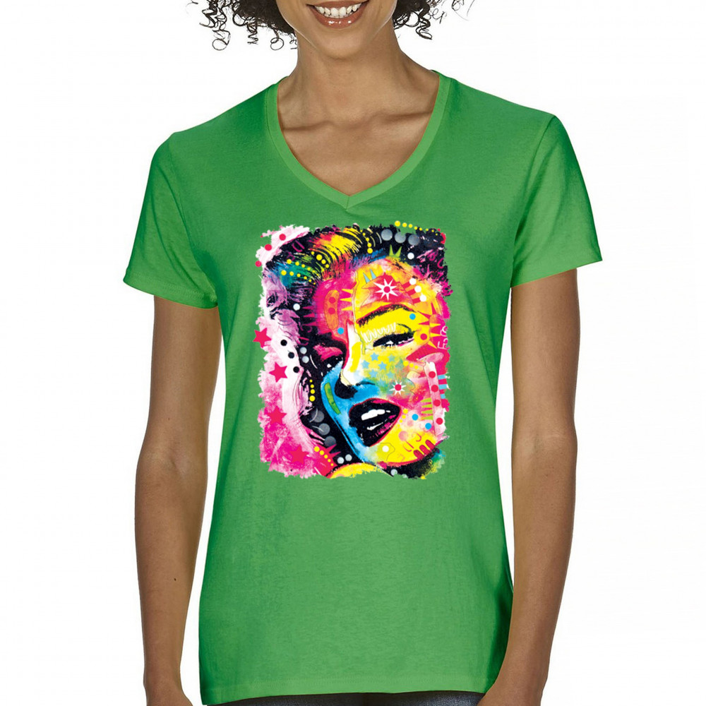 DEAN RUSSO COLORFUL MARILYN women's v-neck t-shirt neon hot symbol starlet tee green