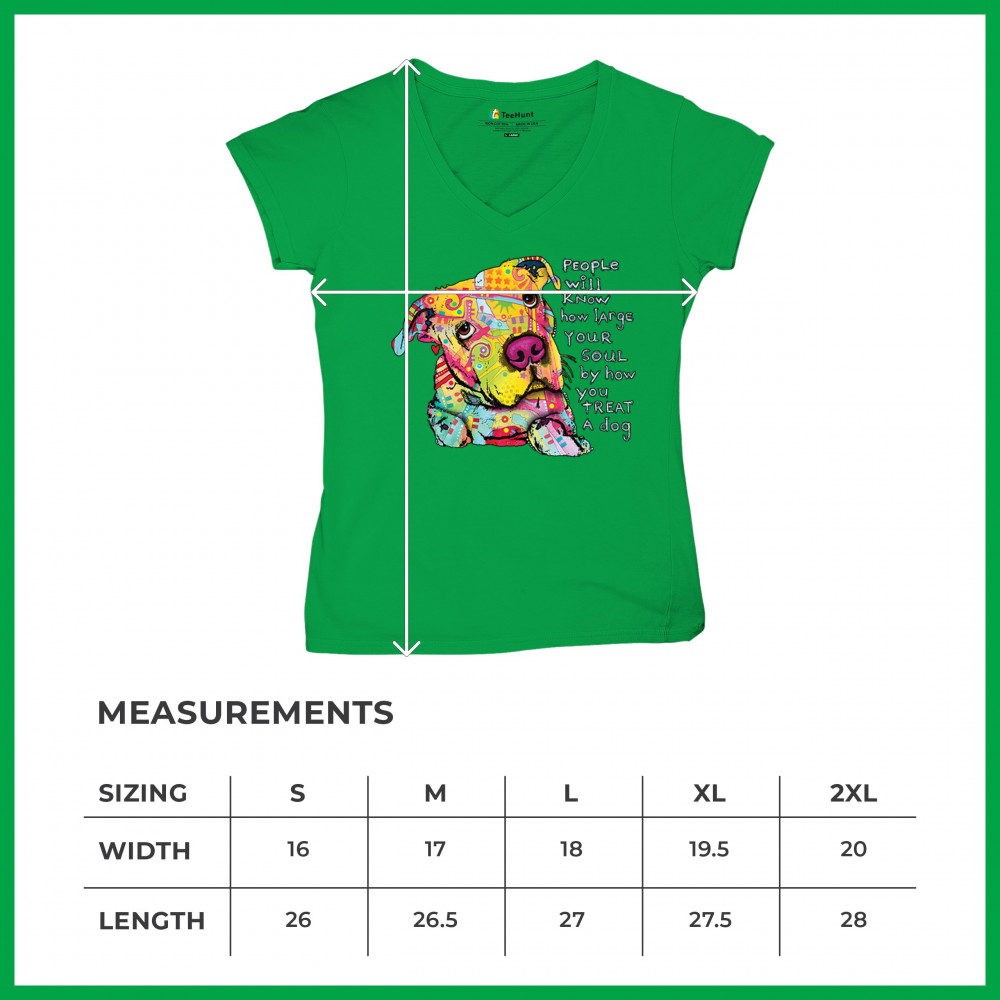 DEAN RUSSO COLORFUL NEON DOG women's v-neck t-shirt how large your soul is tee green