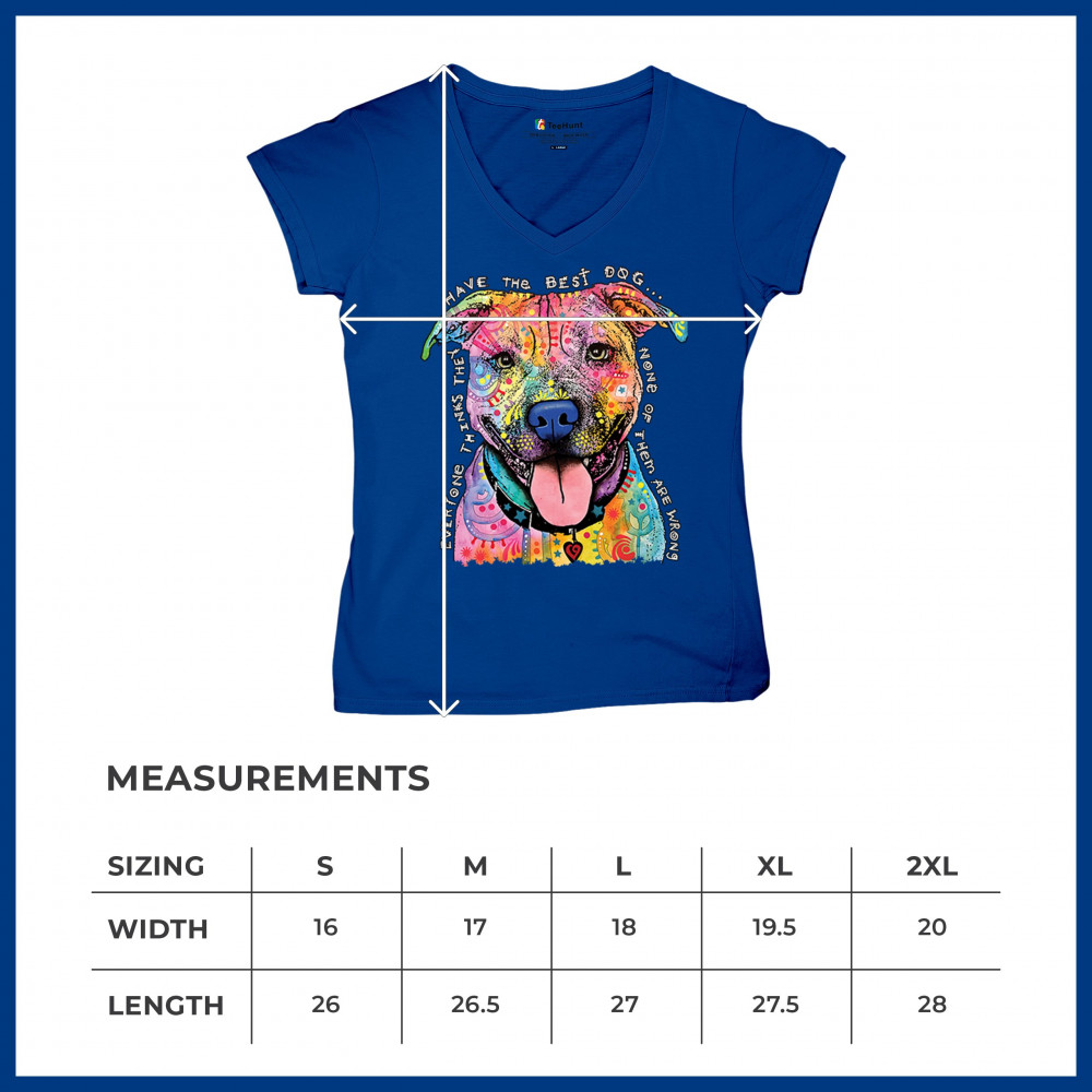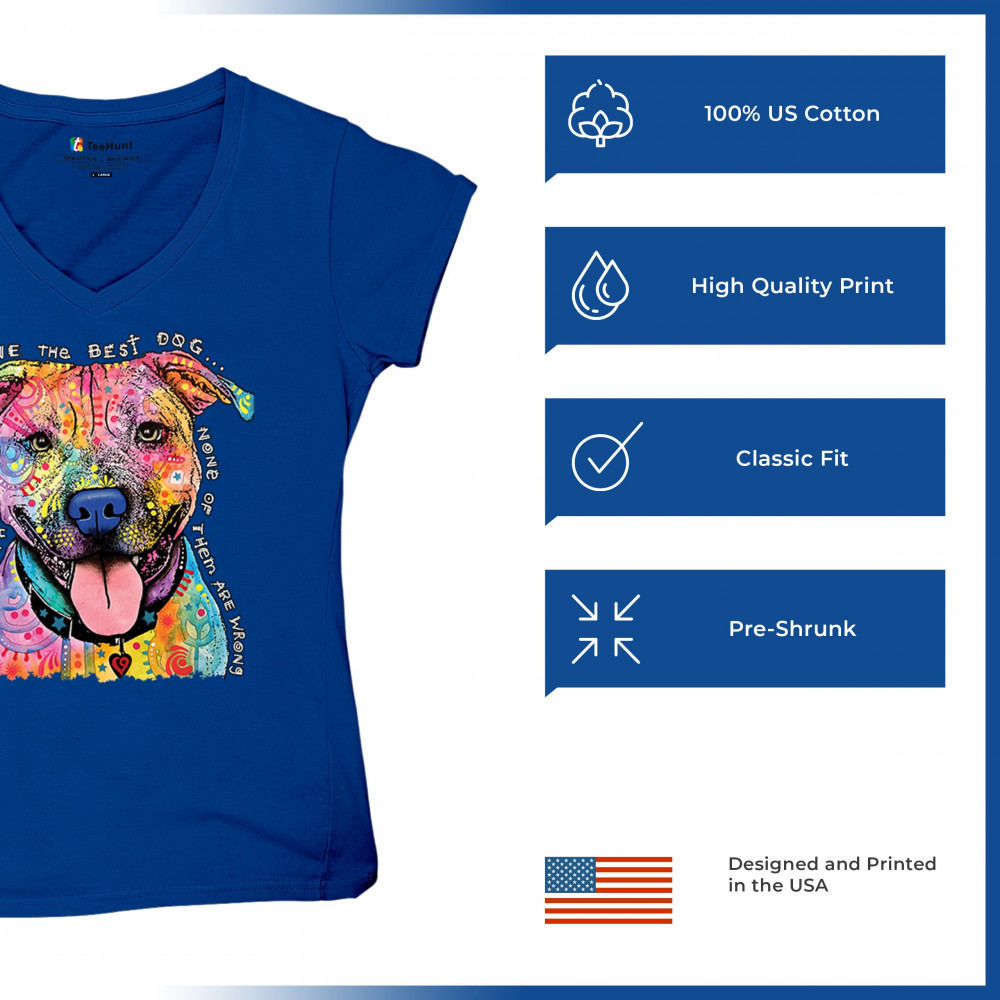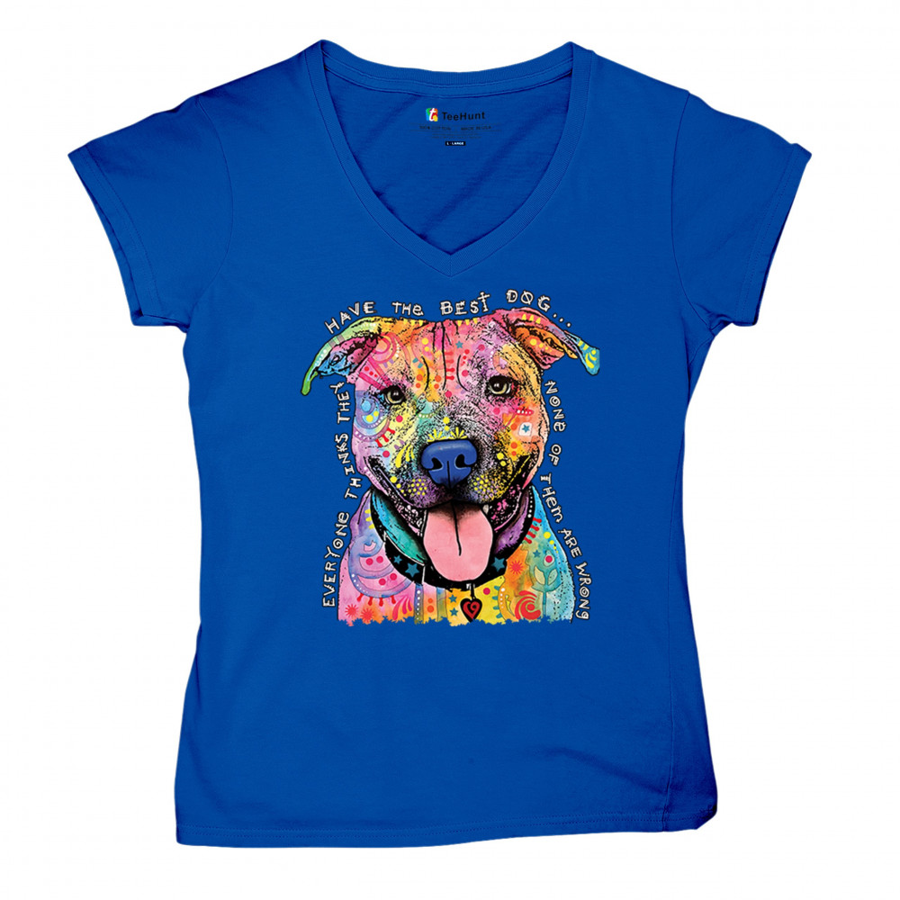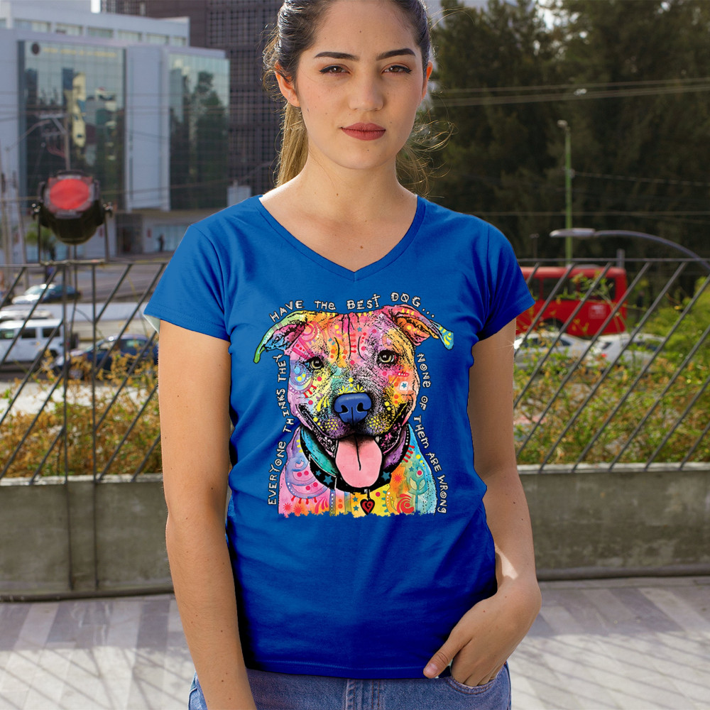 DEAN RUSSO COLORFUL PIT BULL women's v-neck t-shirt everyone has best dogs tee royal blue