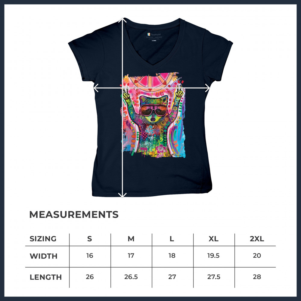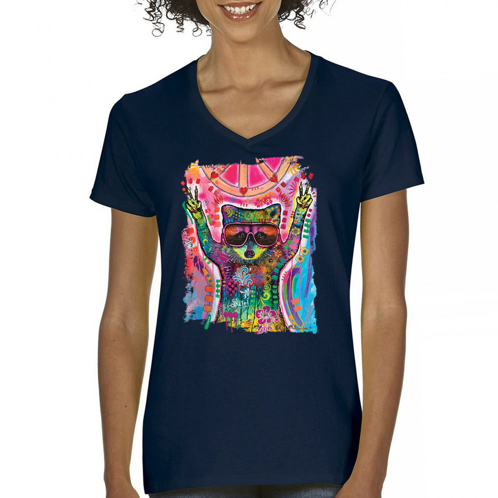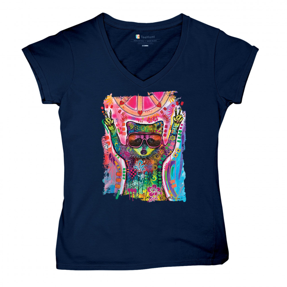 DEAN RUSSO COSMIC TRASH PANDA women's v-neck t-shirt funny weird hippie tee navy blue