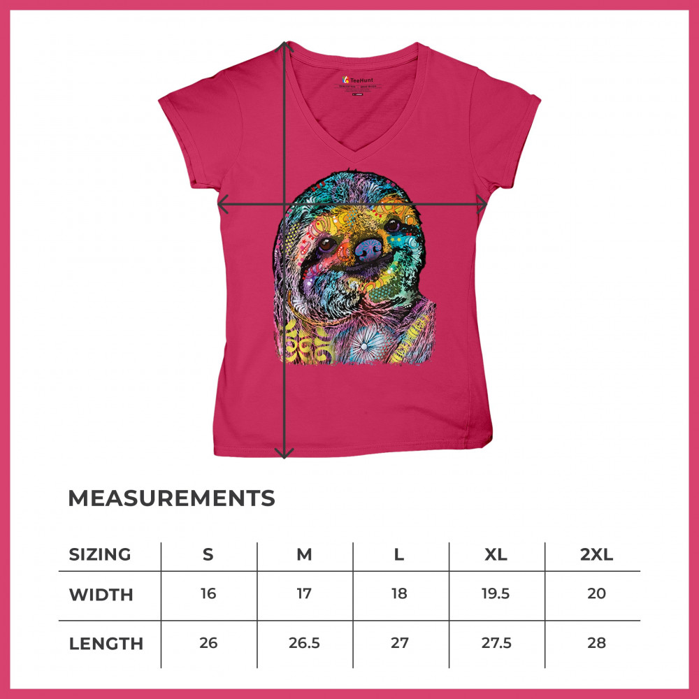 DEAN RUSSO CUTE LAZY SLOTH women's v-neck t-shirt funny wild life colorful tee pink