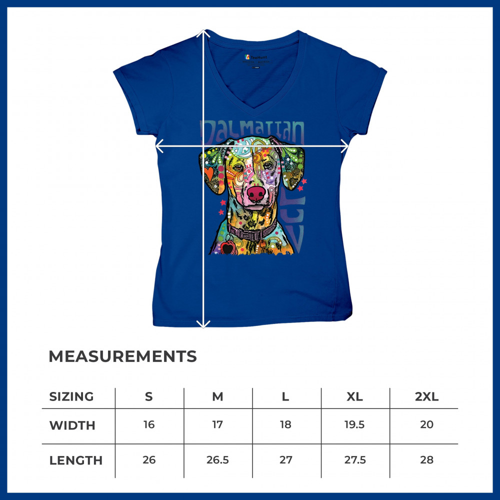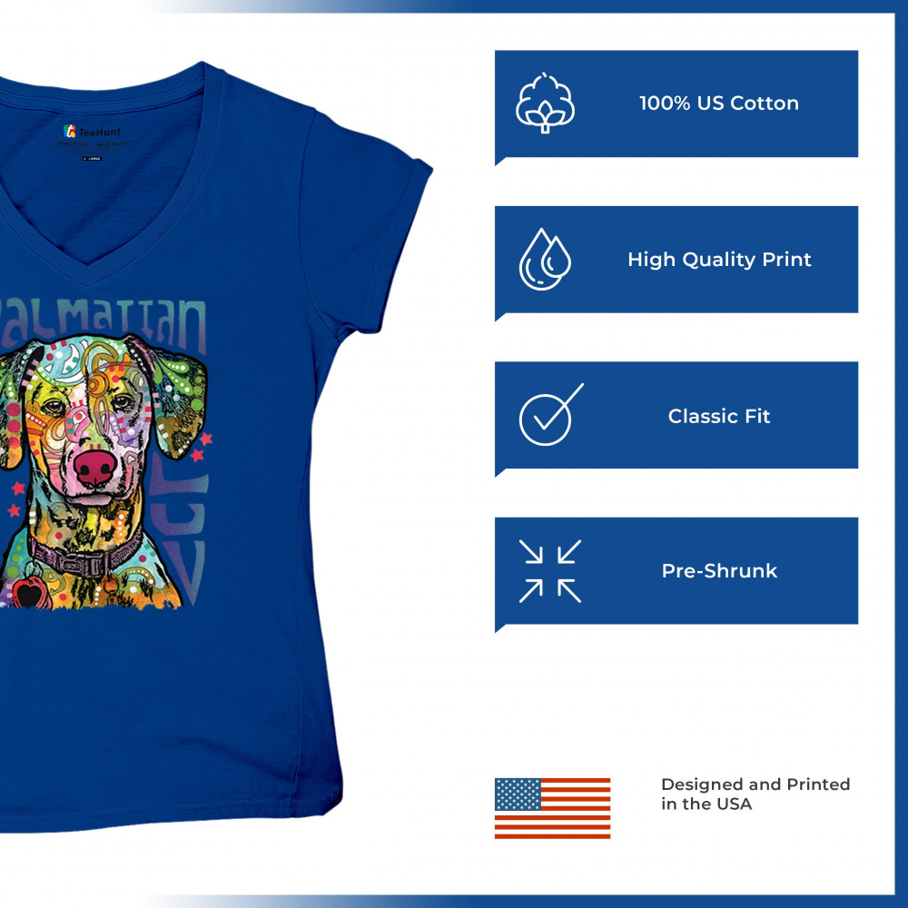 DEAN RUSSO DALMATIAN LUV COLORFUL DOG women's v-neck t-shirt neon puppy tee royal blue