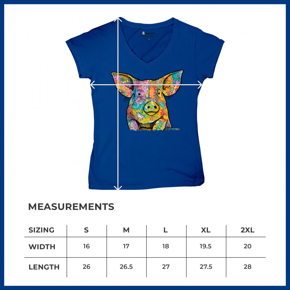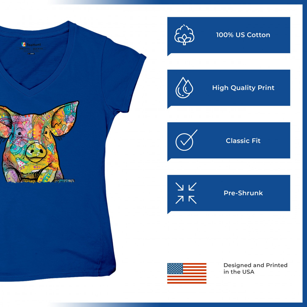 DEAN RUSSO FUNNY CUTE PIG women's v-neck t-shirt farm piglet lover barn tee royal blue
