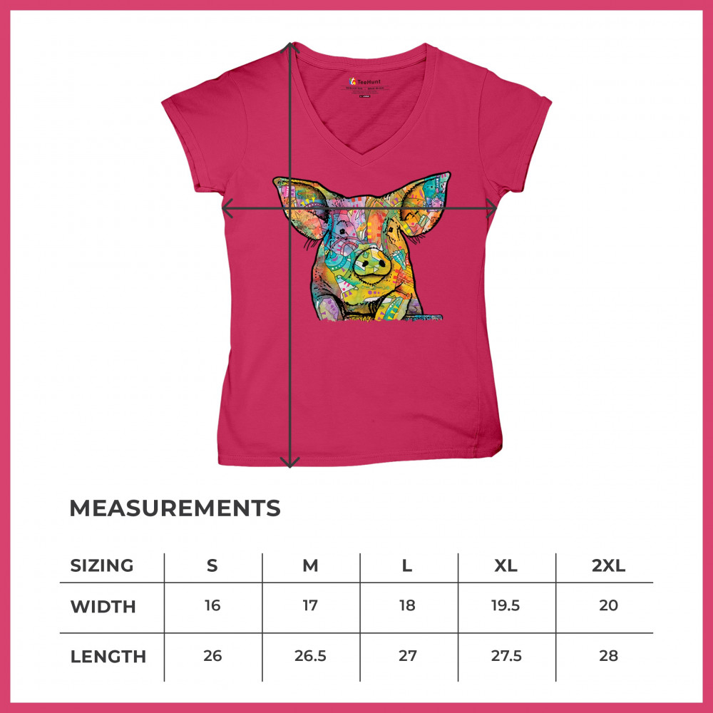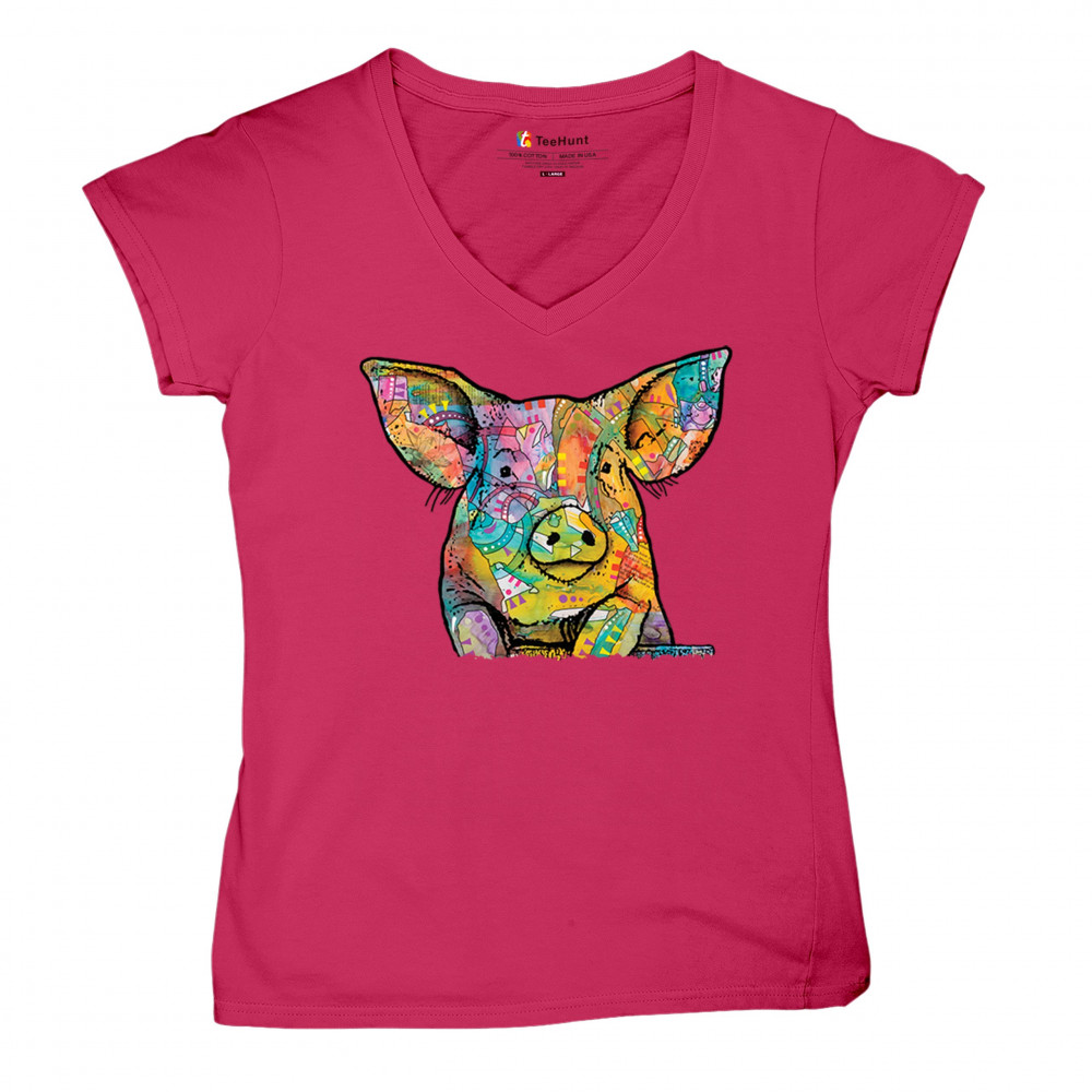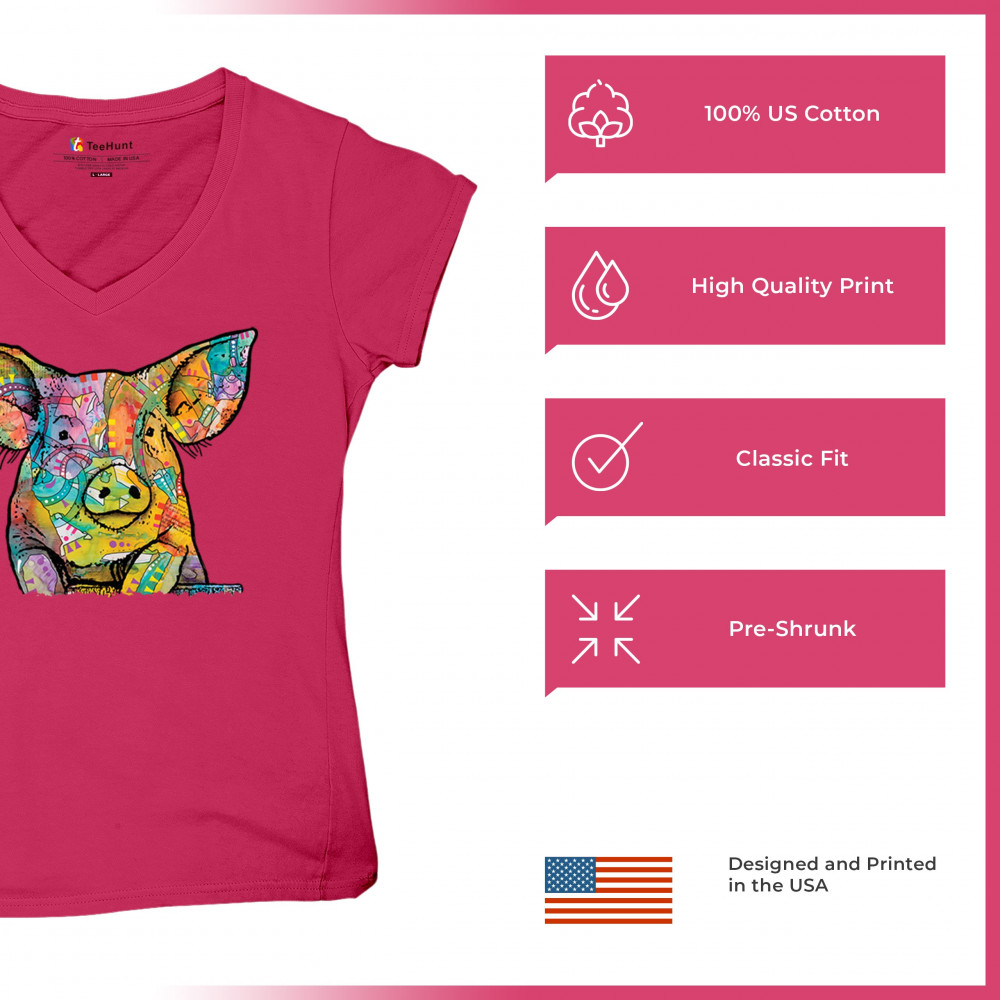 DEAN RUSSO FUNNY CUTE PIG women's v-neck t-shirt farm piglet lover barn tee pink