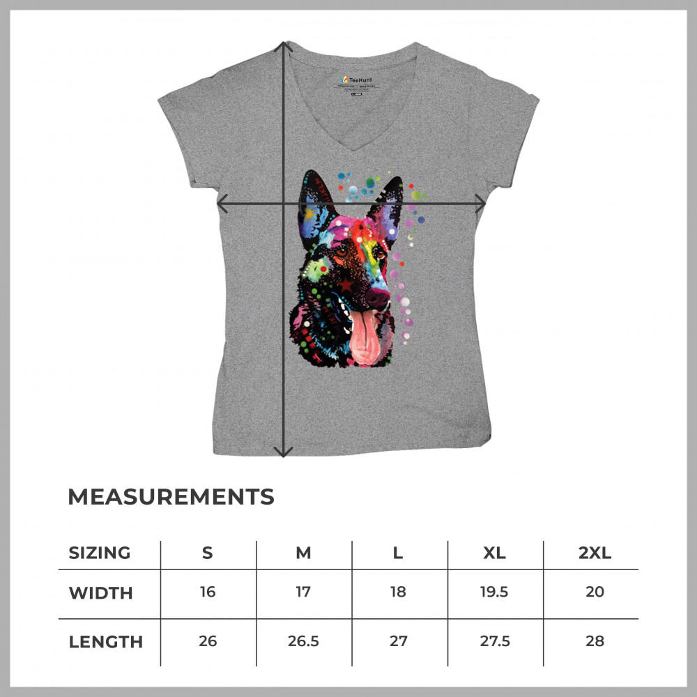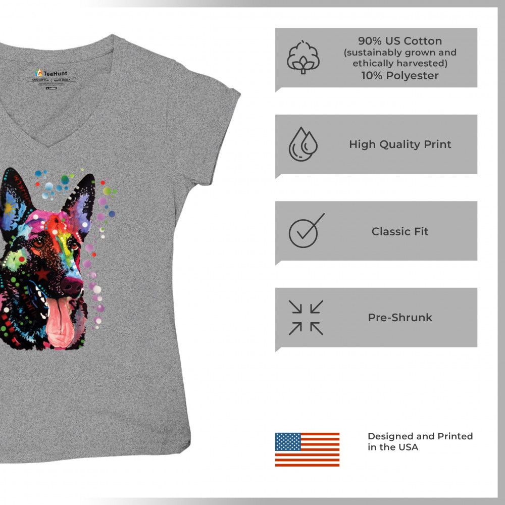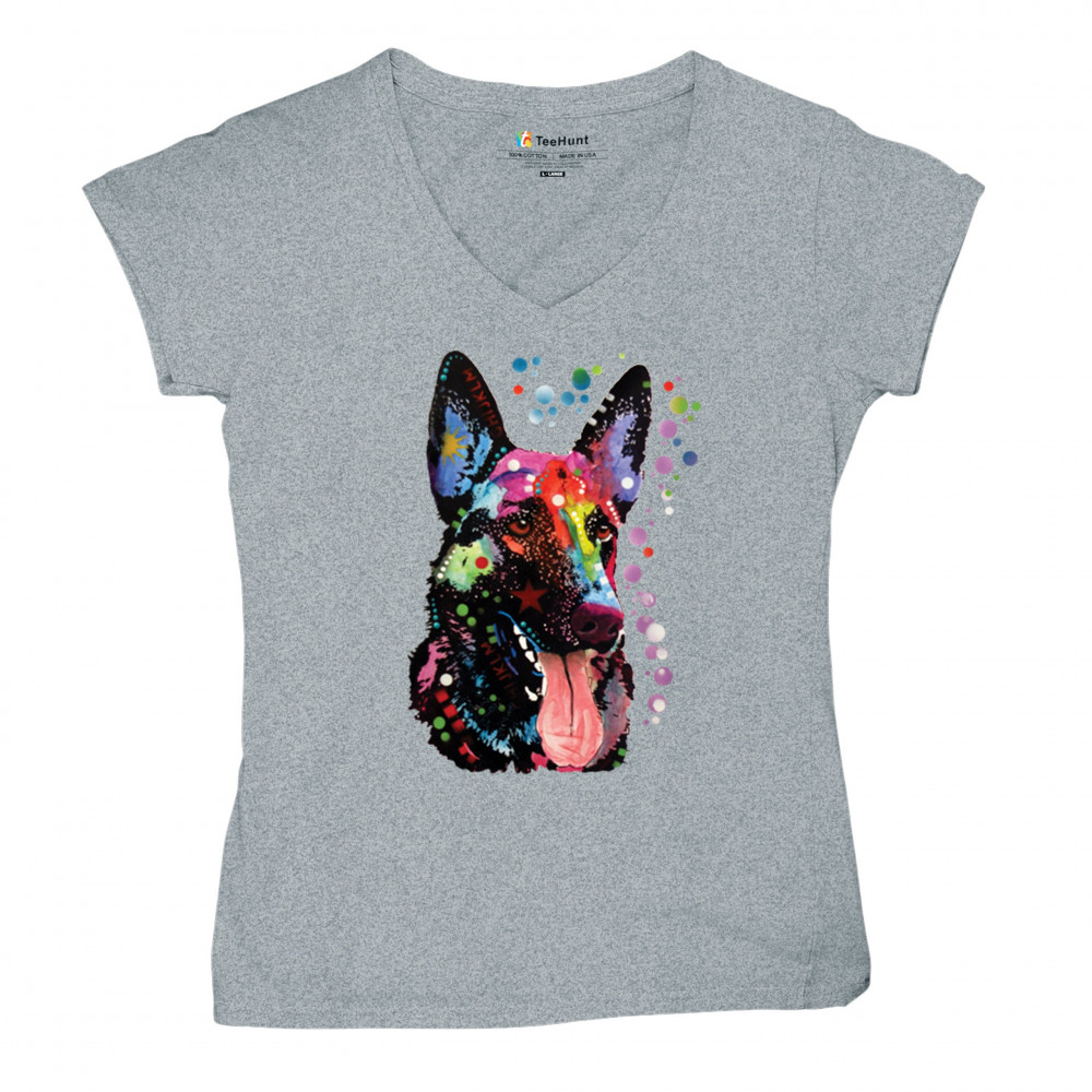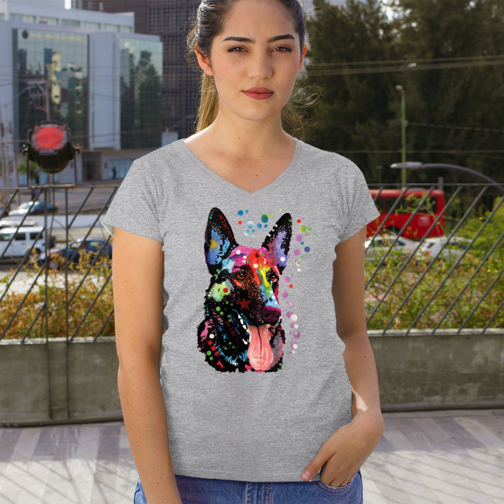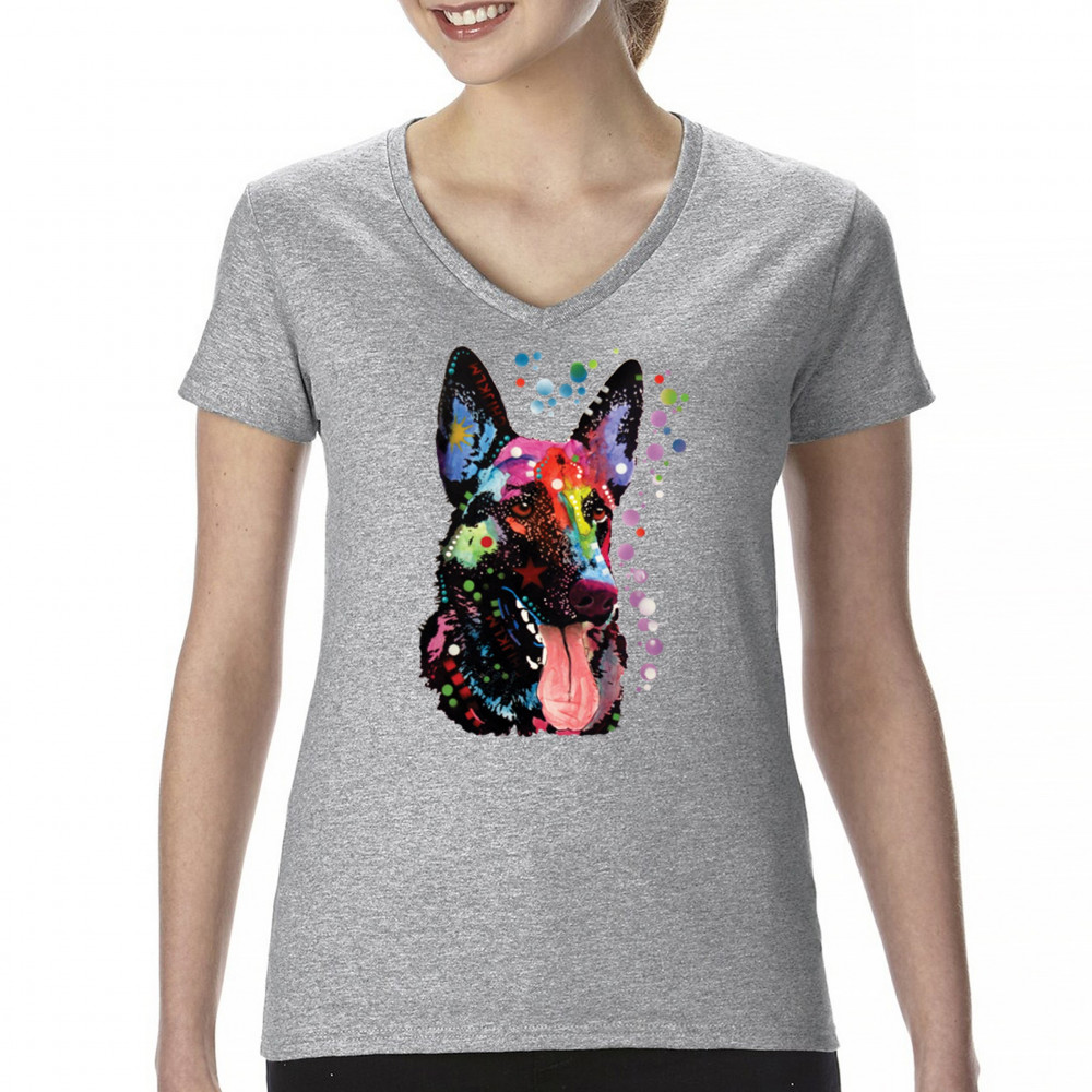DEAN RUSSO GERMAN SHEPHERD women's v-neck t-shirt colorful dog best friend tee gray