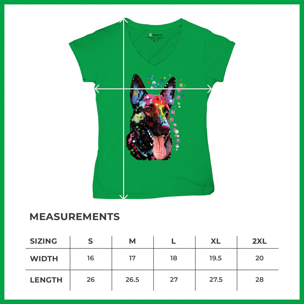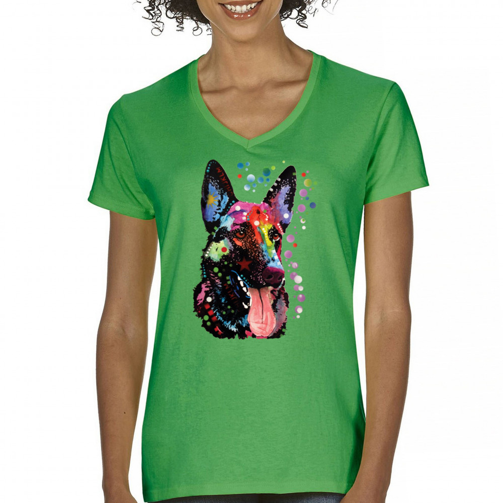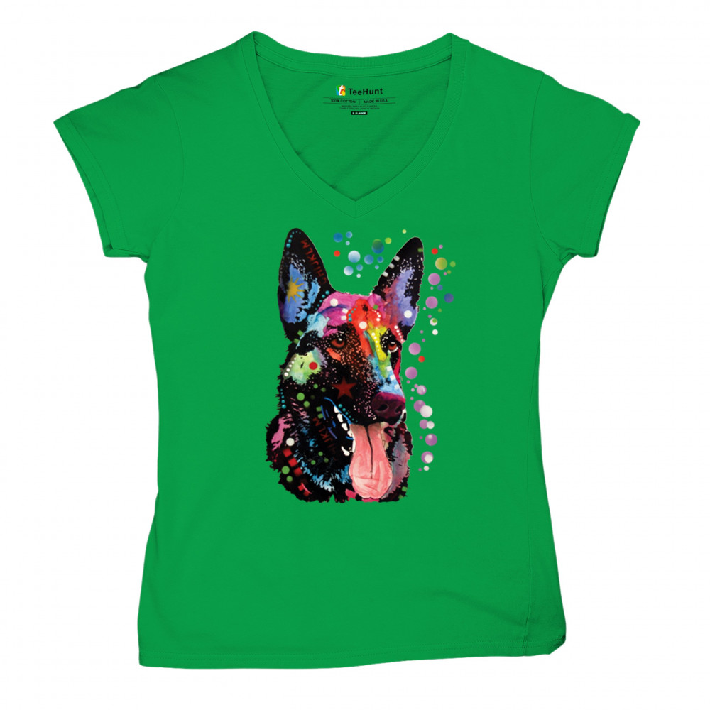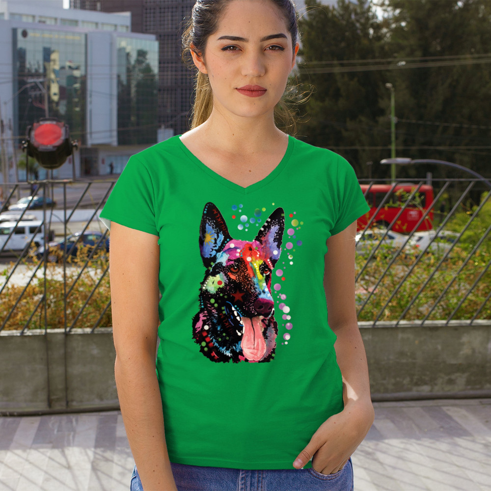DEAN RUSSO GERMAN SHEPHERD women's v-neck t-shirt colorful dog best friend tee green