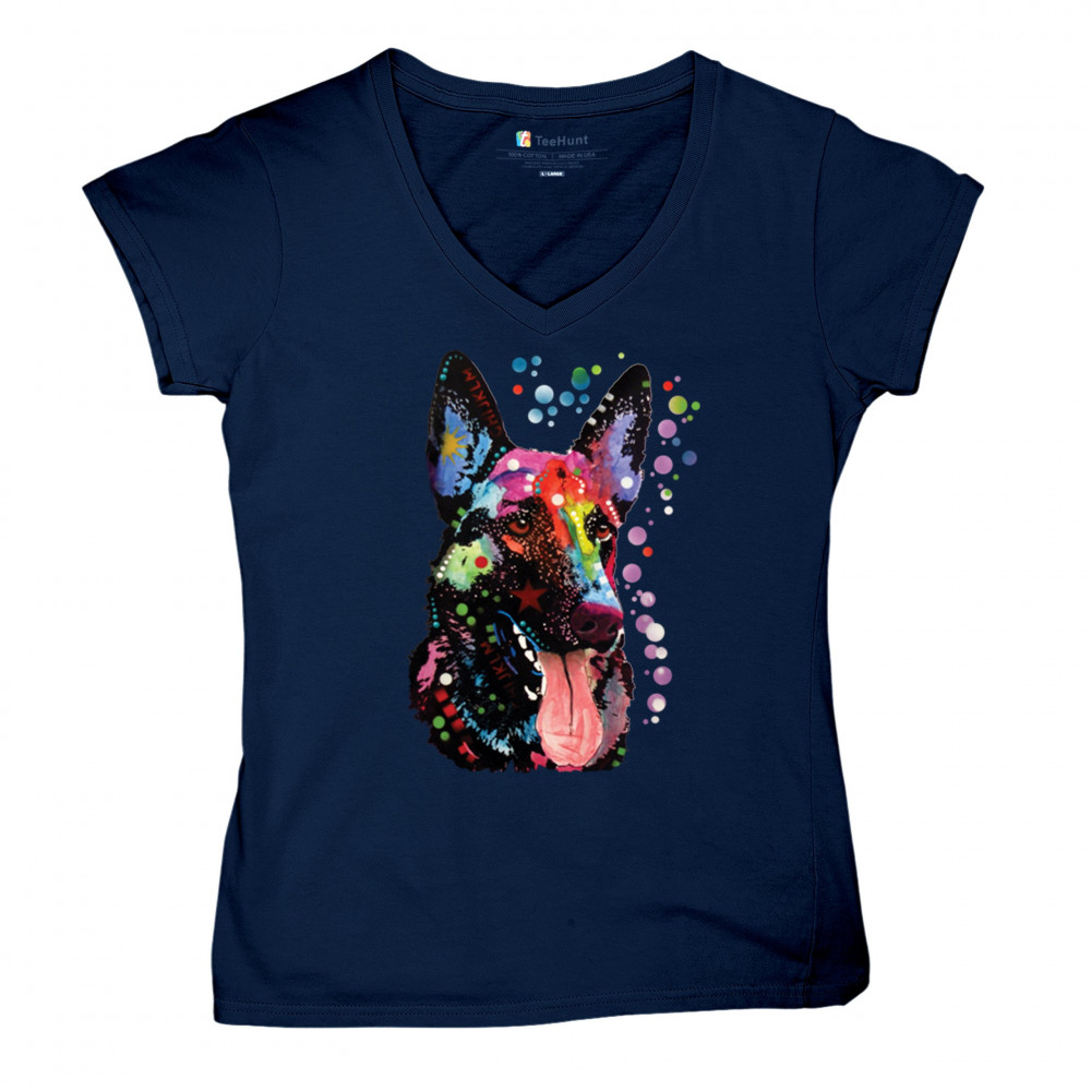 DEAN RUSSO GERMAN SHEPHERD women's v-neck t-shirt colorful dog best friend tee navy blue