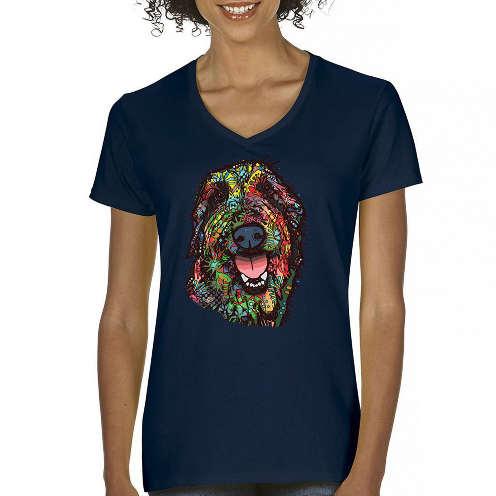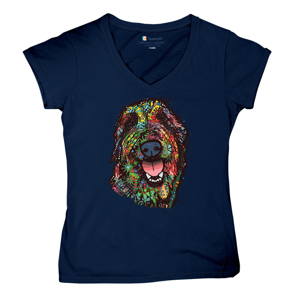 FUNNY FEELING HAPPY DOG FACE dean russo happy dog face women's v-neck t-shirt funny feeling pet tee navy blue