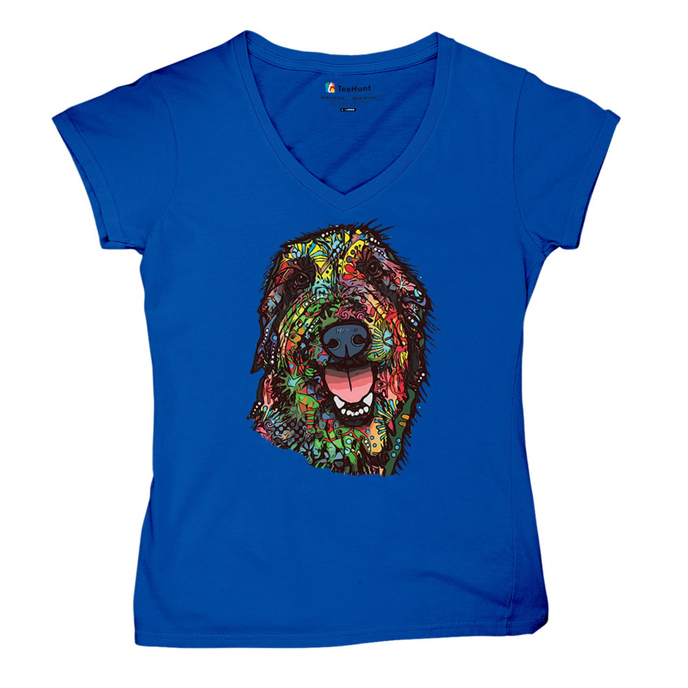 FUNNY FEELING HAPPY DOG FACE dean russo happy dog face women's v-neck t-shirt funny feeling pet tee royal blue