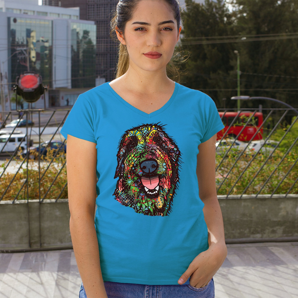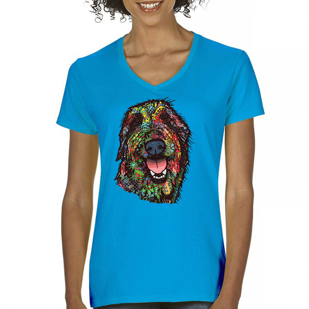 FUNNY FEELING HAPPY DOG FACE dean russo happy dog face women's v-neck t-shirt funny feeling pet tee turquoise