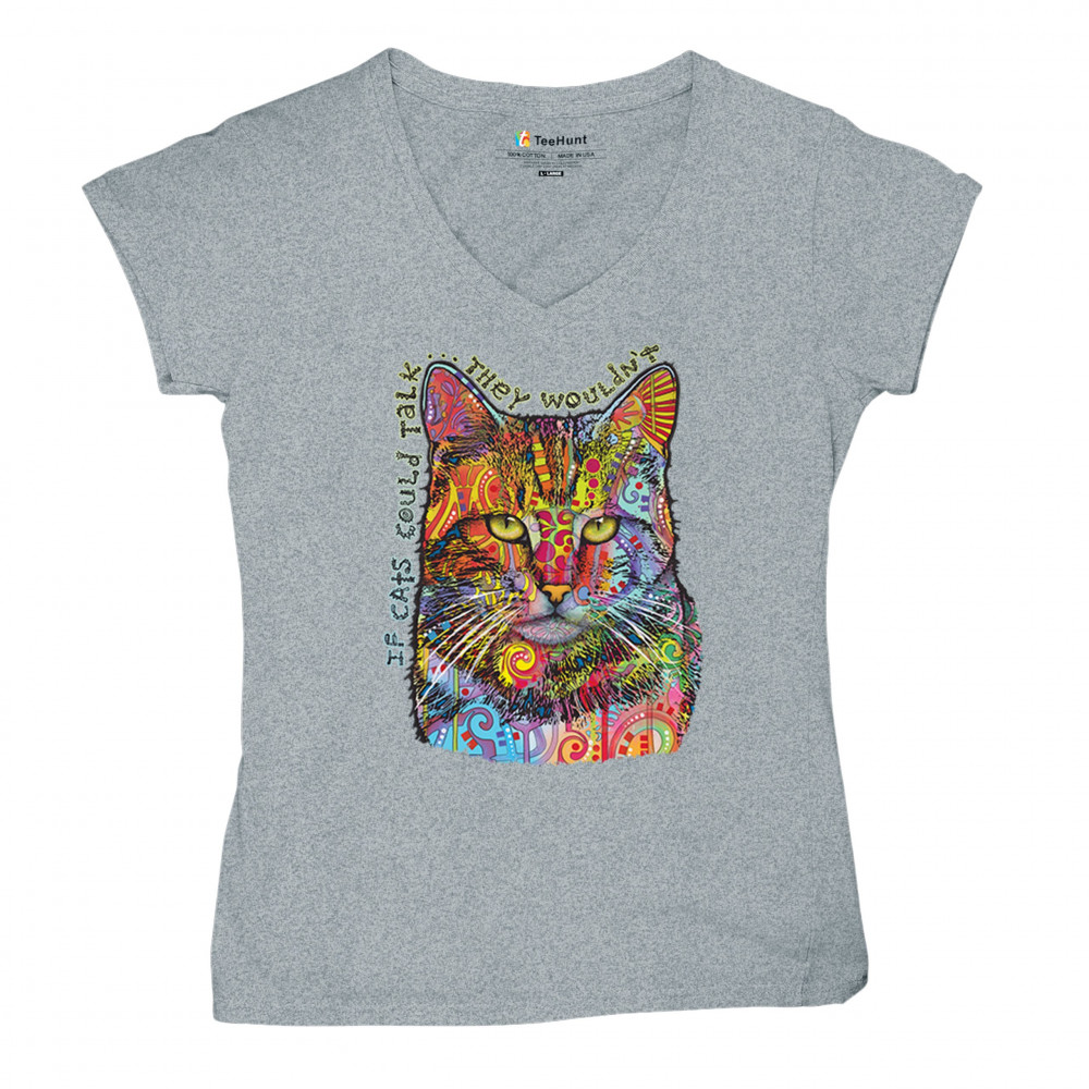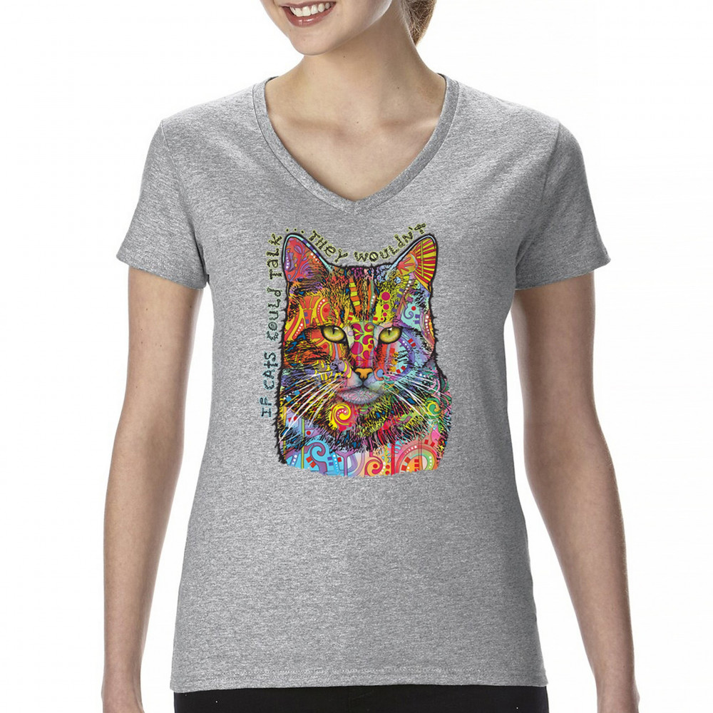 DEAN RUSSO IF CATS COULD TALK THEY WOULDN'T women's v-neck t-shirt cute cat tee gray