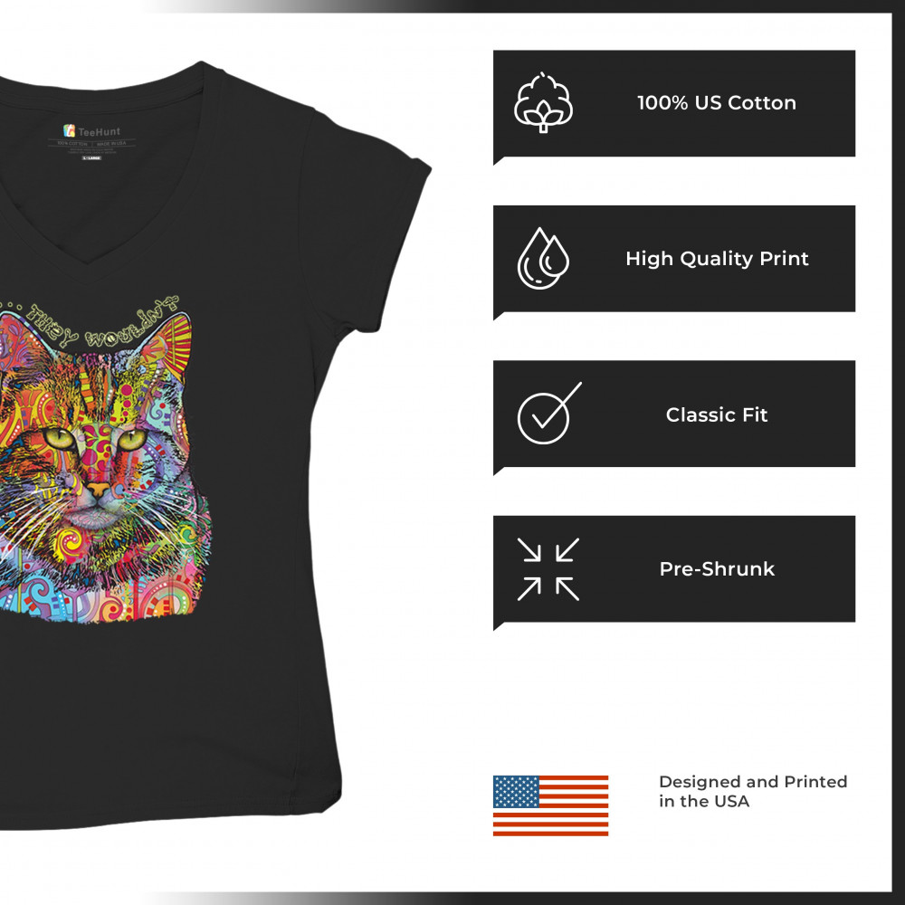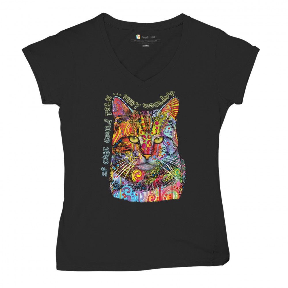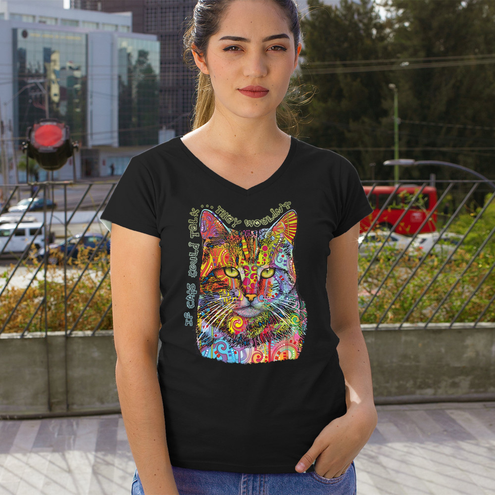DEAN RUSSO IF CATS COULD TALK THEY WOULDN'T women's v-neck t-shirt cute cat tee black