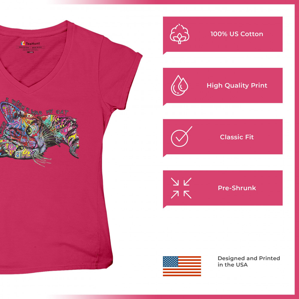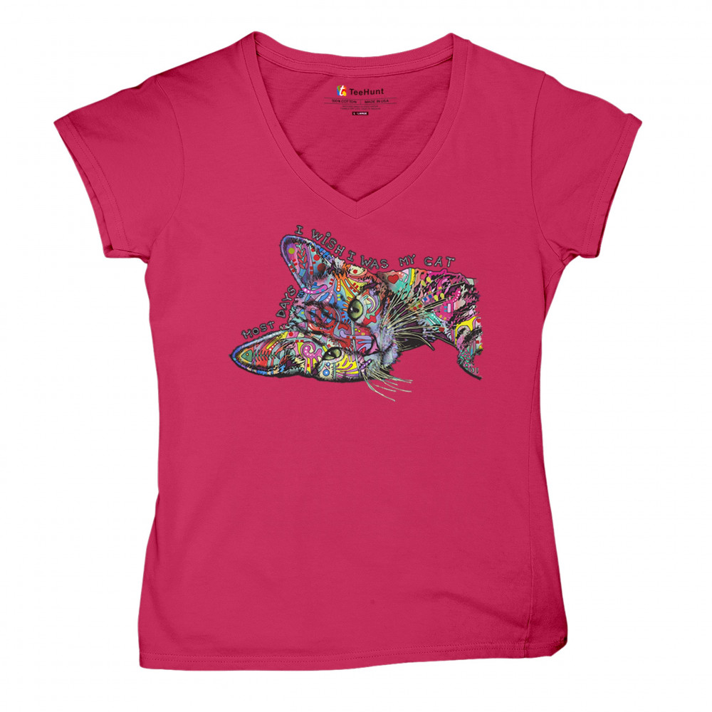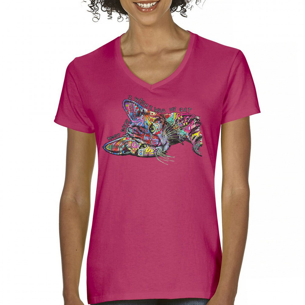 DEAN RUSSO MOST DAYS I WISH I WAS MY CAT women's v-neck t-shirt kitten pet tee pink