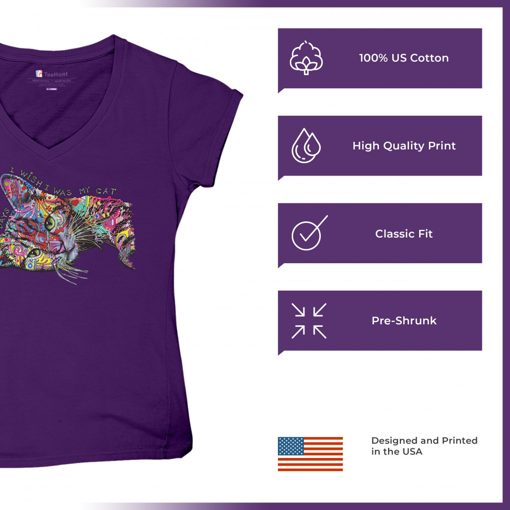DEAN RUSSO MOST DAYS I WISH I WAS MY CAT women's v-neck t-shirt kitten pet tee purple