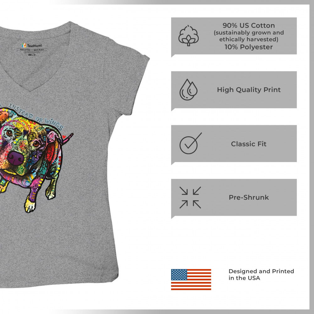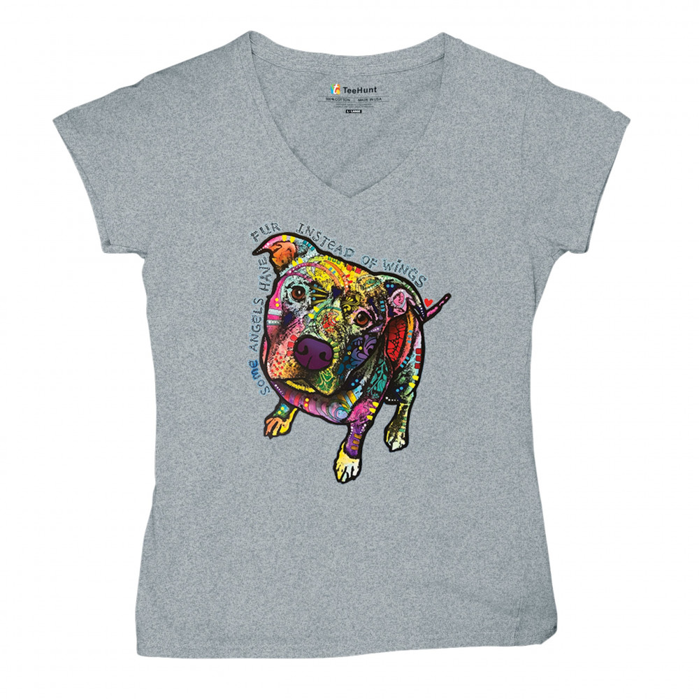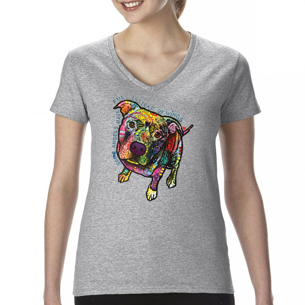 DEAN RUSSO PIT BULL women's v-neck t-shirt dog paw some angels have fur tee gray