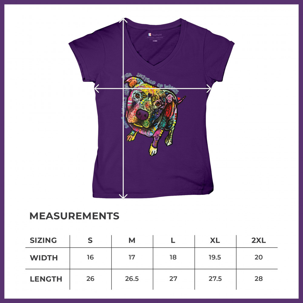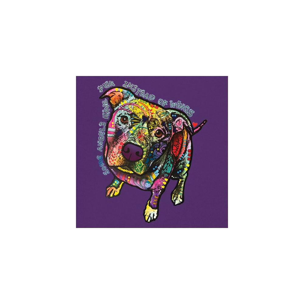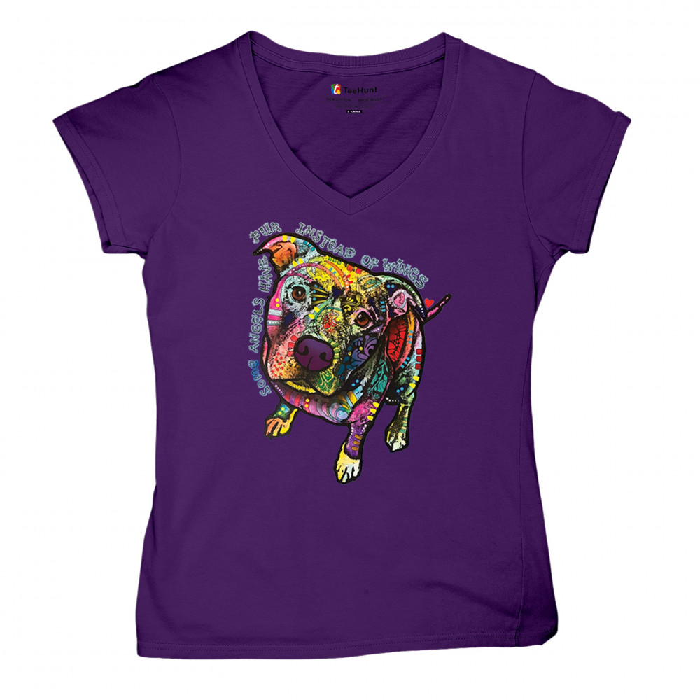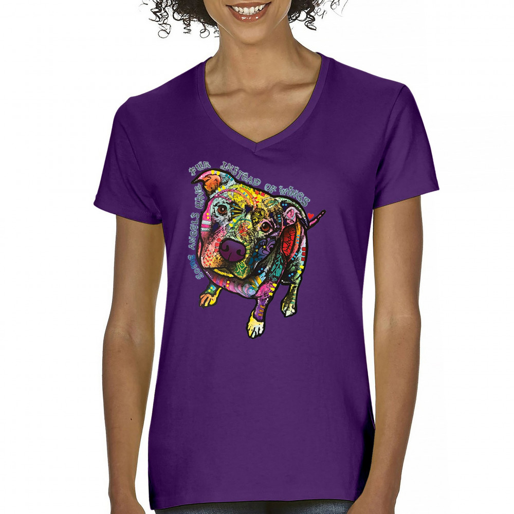 DEAN RUSSO PIT BULL women's v-neck t-shirt dog paw some angels have fur tee purple