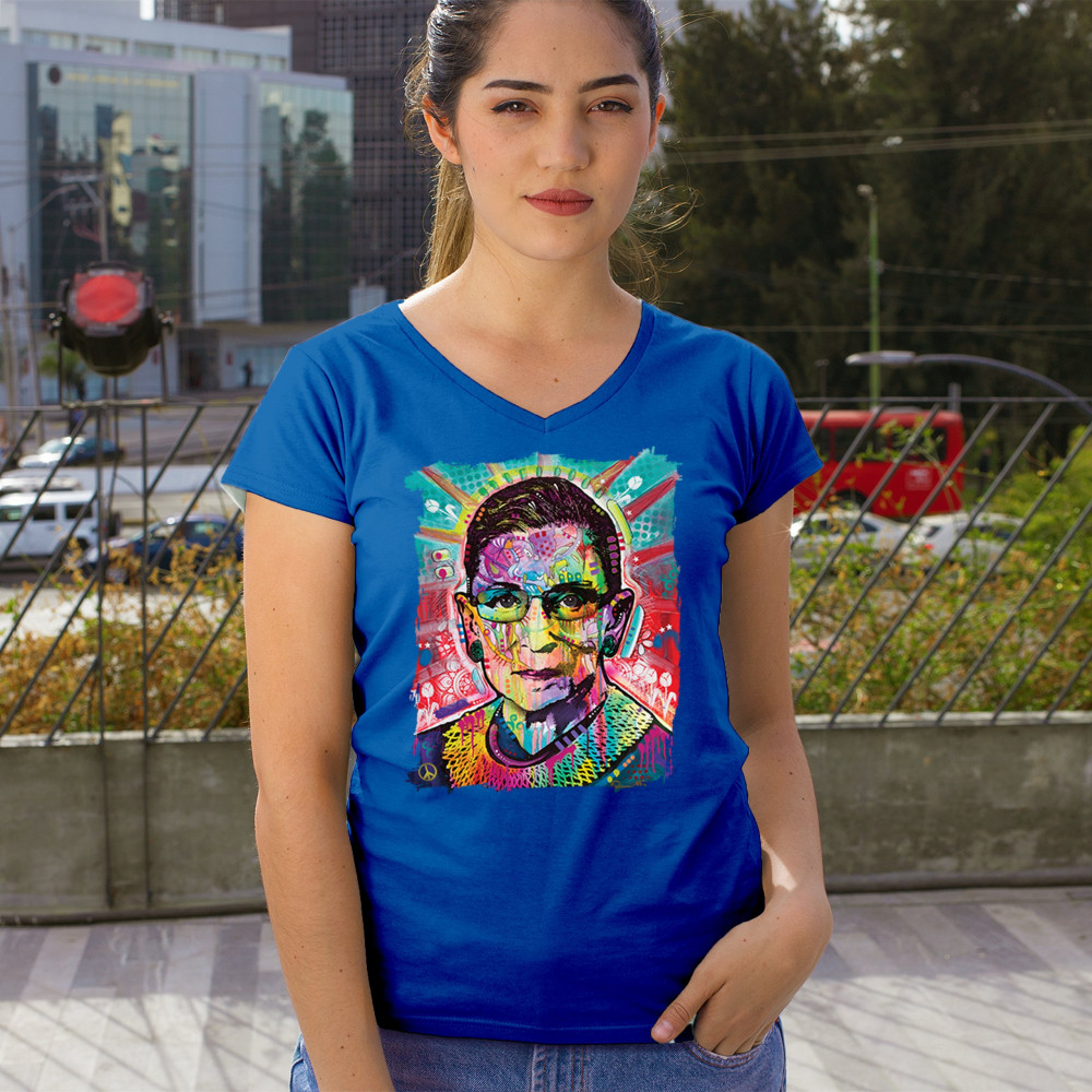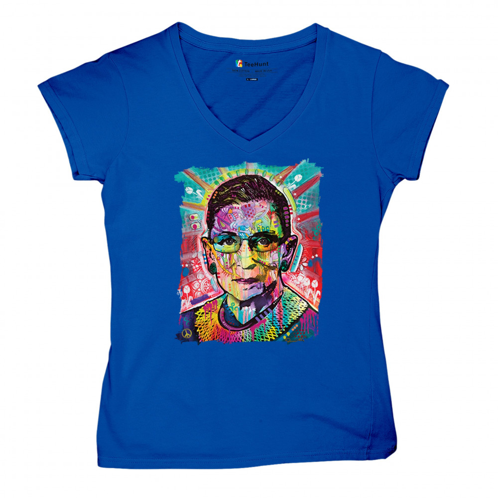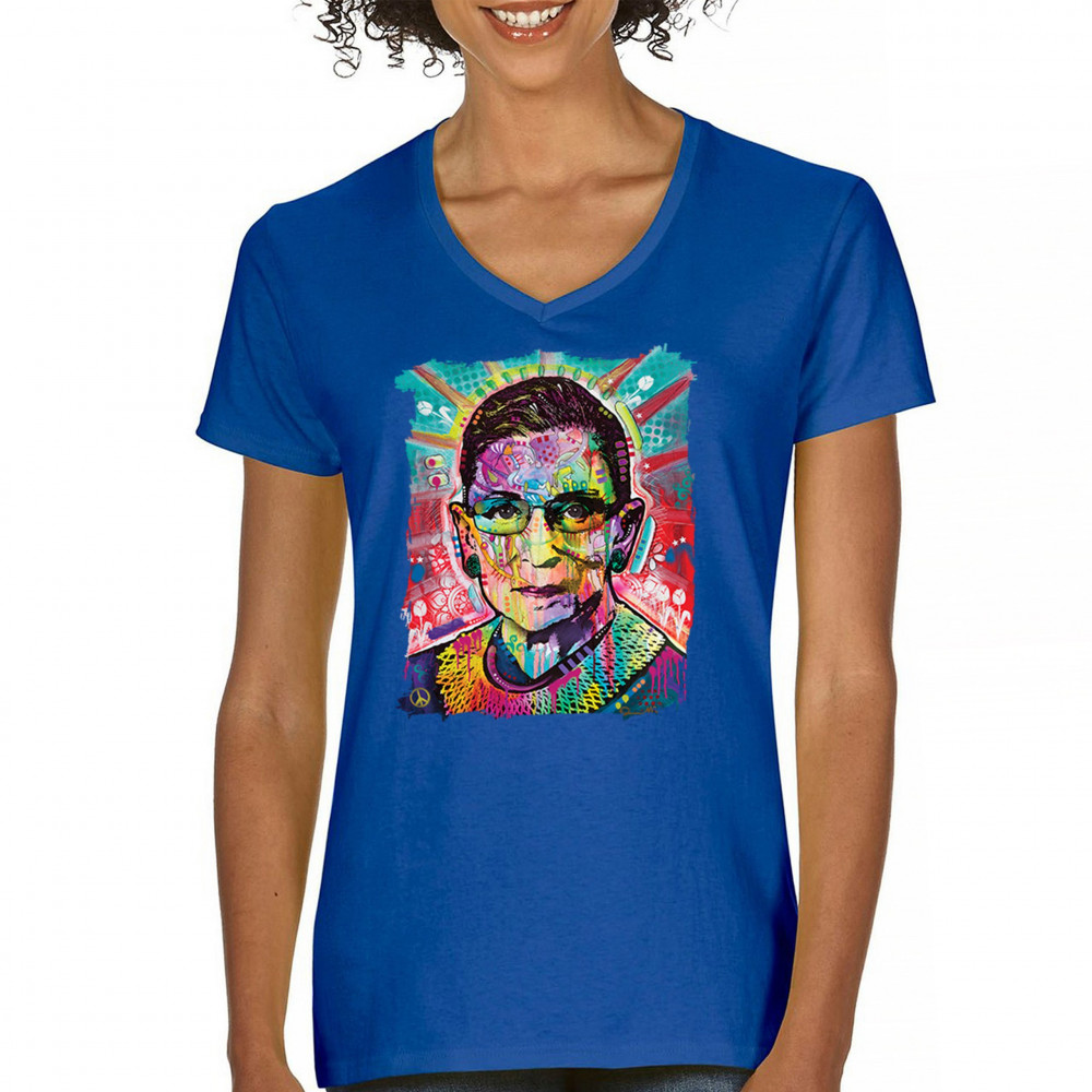DEAN RUSSO RUTH BADER GINSBURG women's v-neck t-shirt pop culture icon rbg tee royal blue