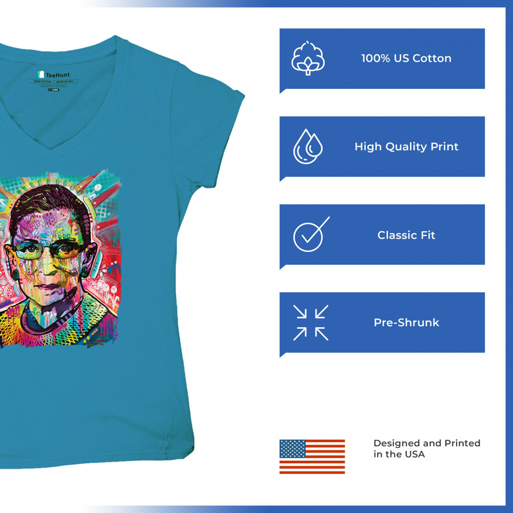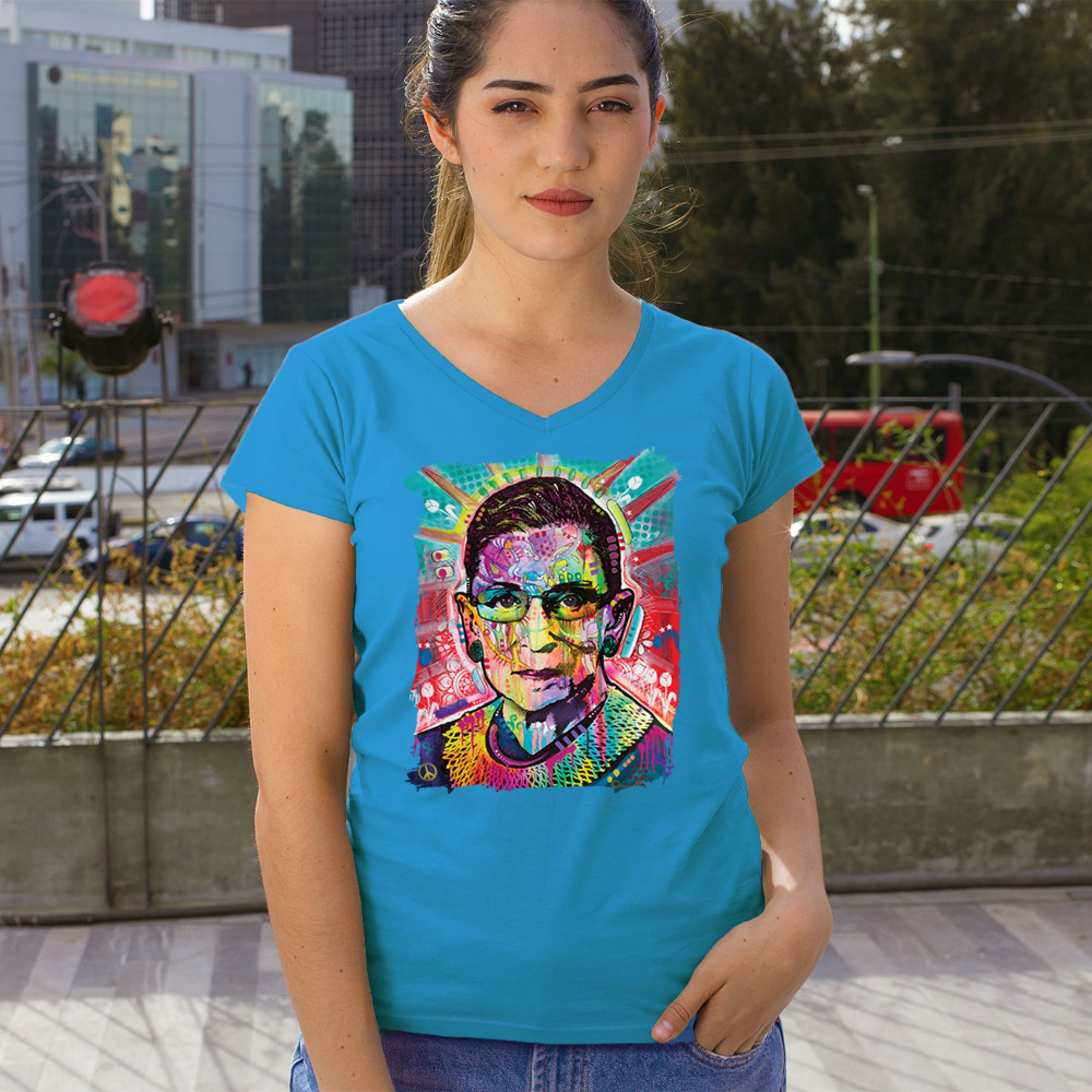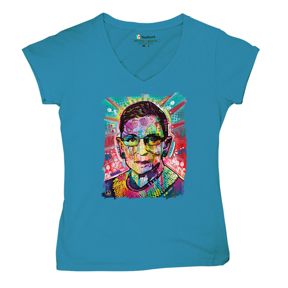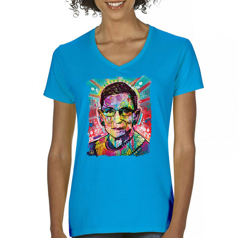DEAN RUSSO RUTH BADER GINSBURG women's v-neck t-shirt pop culture icon rbg tee turquoise