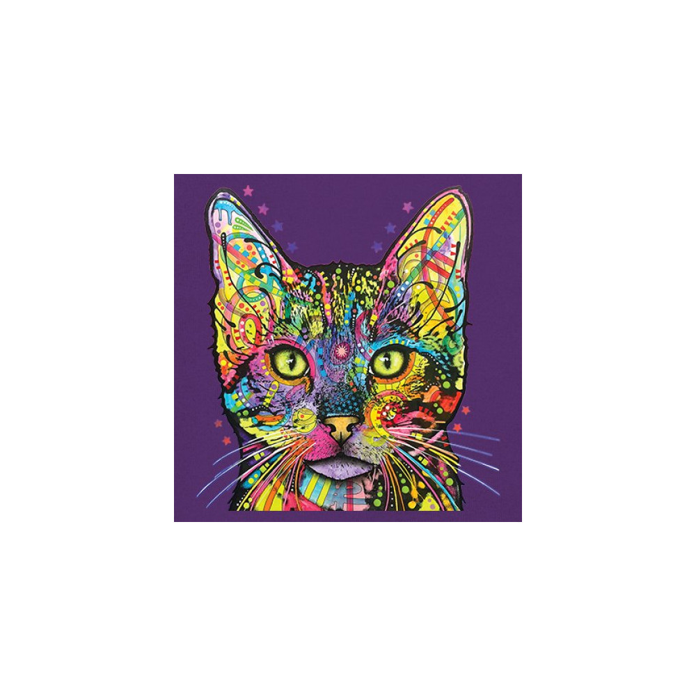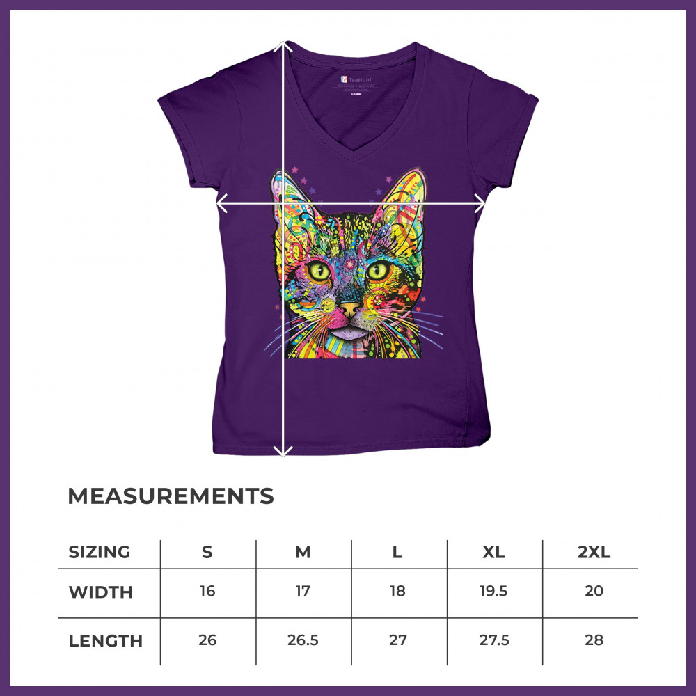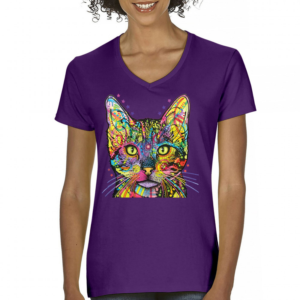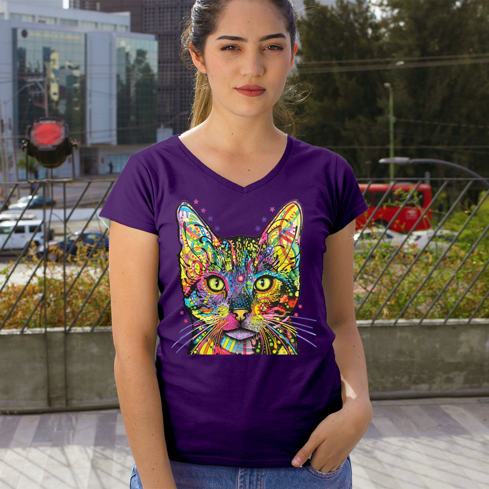 DEAN RUSSO SHIVA CAT STARE women's v-neck t-shirt neon colorful kitten tee purple