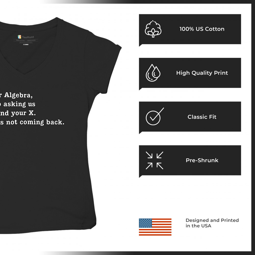 DEAR ALGEBRA STOP ASKING US TO FIND YOUR X women's v-neck t-shirt funny tee black