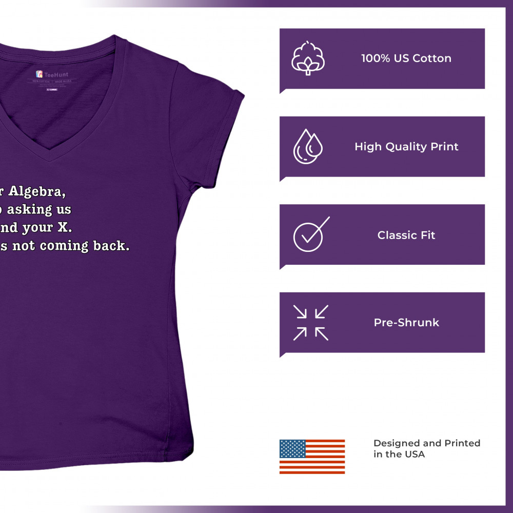 DEAR ALGEBRA STOP ASKING US TO FIND YOUR X women's v-neck t-shirt funny tee purple