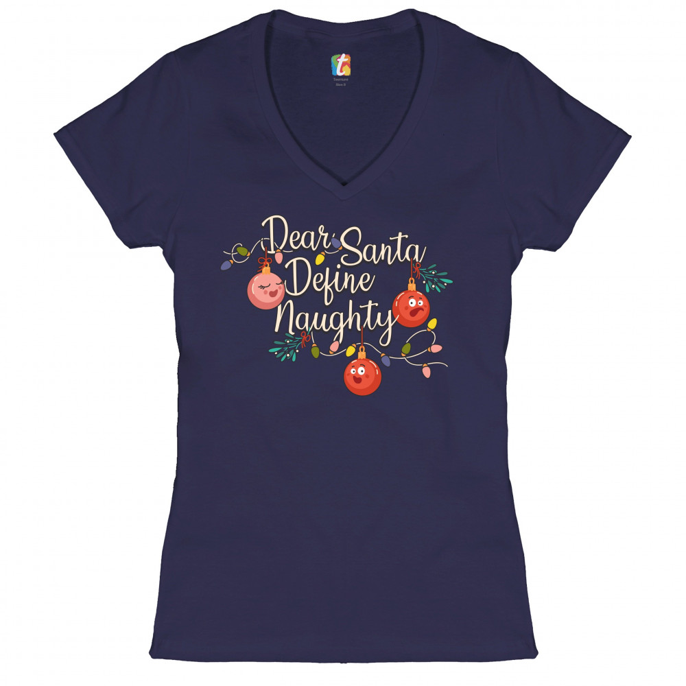 DEAR SANTA DEFINE NAUGHTY women's v-neck t-shirt merry christmas funny tee navy blue