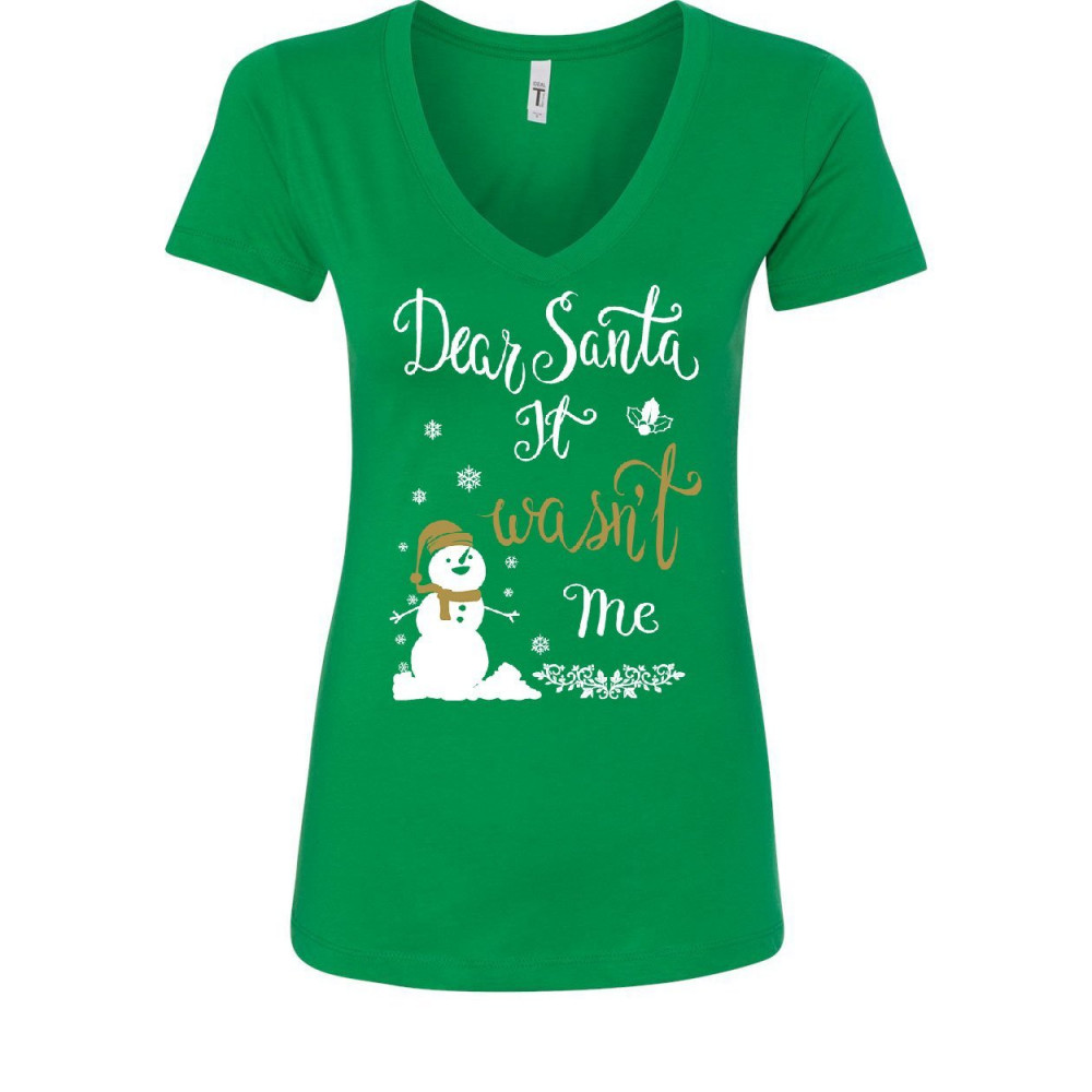 DEAR SANTA IT WASN'T ME women's v-neck t-shirt funny naughty christmas eve xmas green