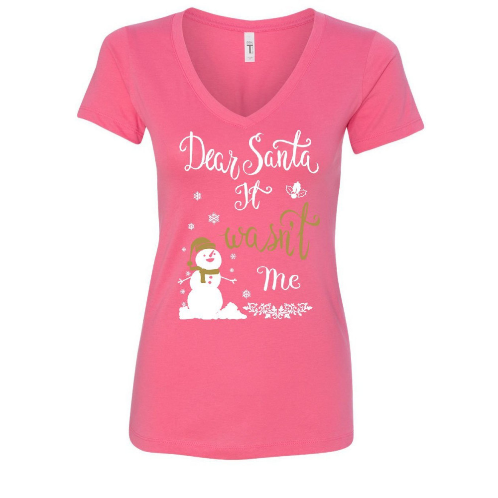 DEAR SANTA IT WASN'T ME women's v-neck t-shirt funny naughty christmas eve xmas pink