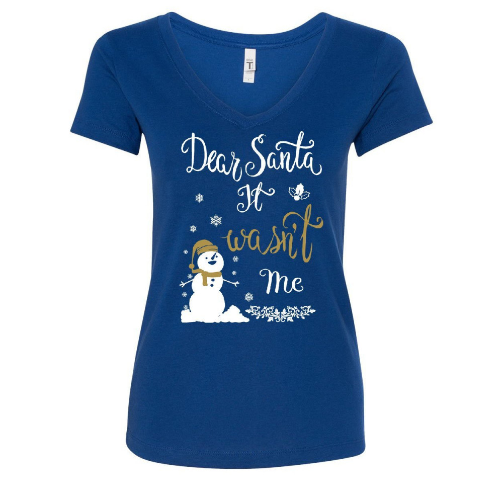 DEAR SANTA IT WASN'T ME women's v-neck t-shirt funny naughty christmas eve xmas royal blue