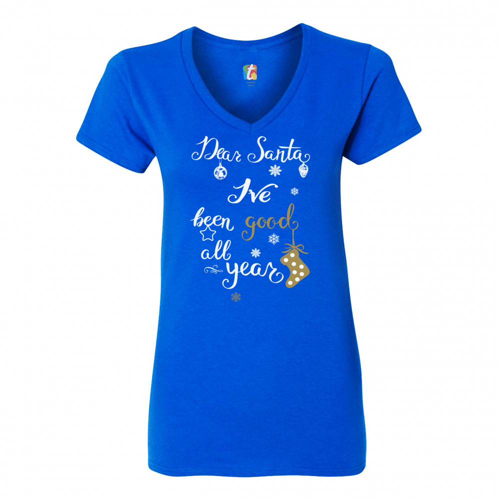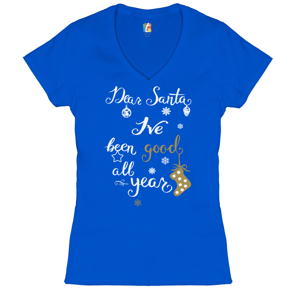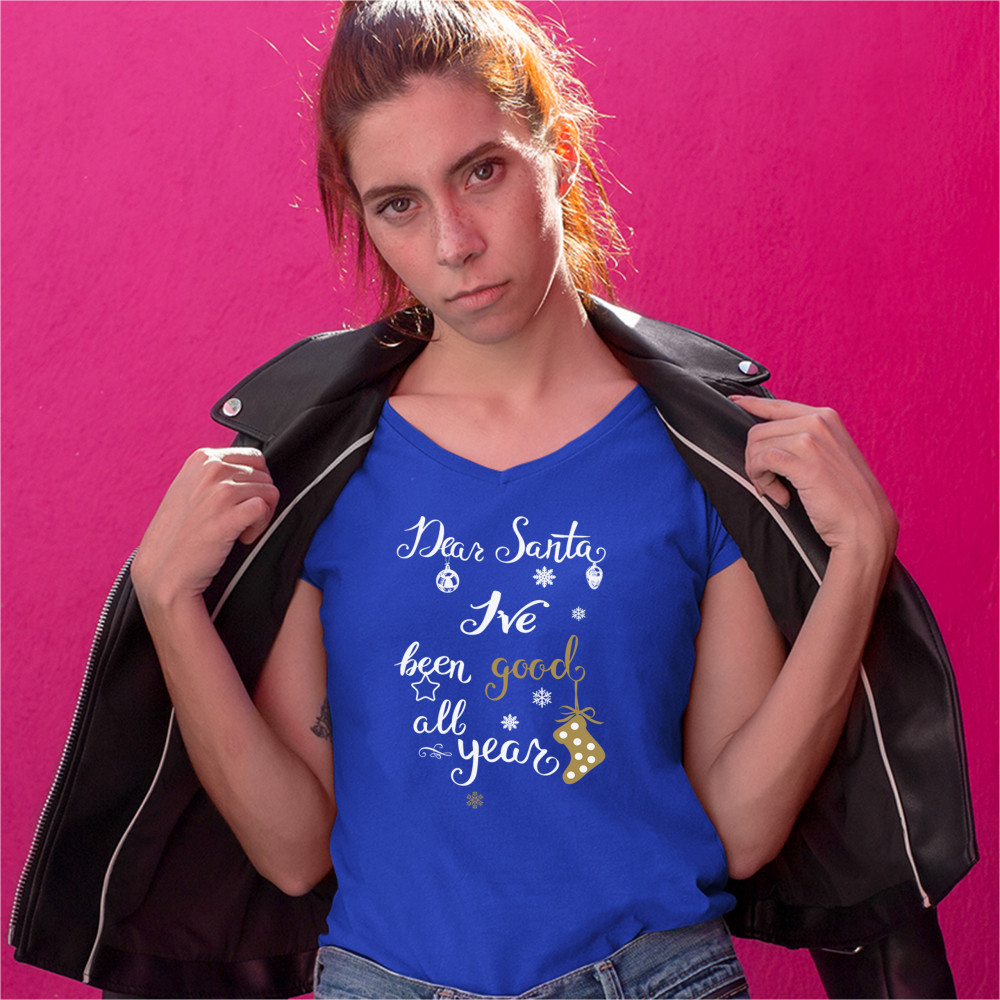 DEAR SANTA I'VE BEEN GOOD ALL YEAR women's v-neck t-shirt funny christmas xmas tee royal blue