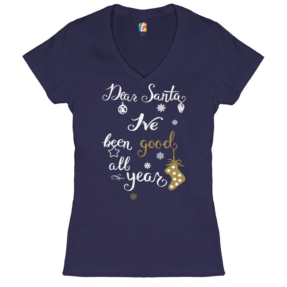 DEAR SANTA I'VE BEEN GOOD ALL YEAR women's v-neck t-shirt funny christmas xmas tee navy blue