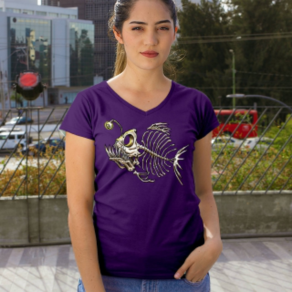 This highly detailed angler fish skeleton design features sharp bones, glowing lure eye, and deep sea terror aesthetic. Perfect for horror fans, marine biology lovers, and ocean adventurers, it combines underwater predator vibes with bone art flair. A great fit for Halloween, dive clubs, and dark sea aesthetics.