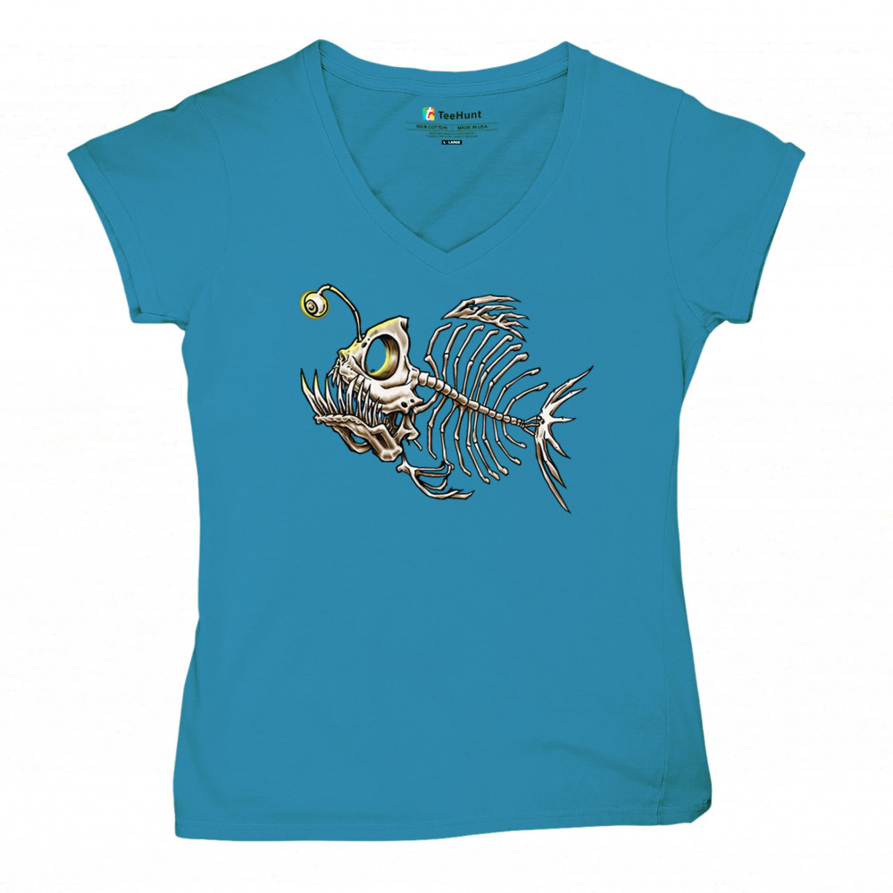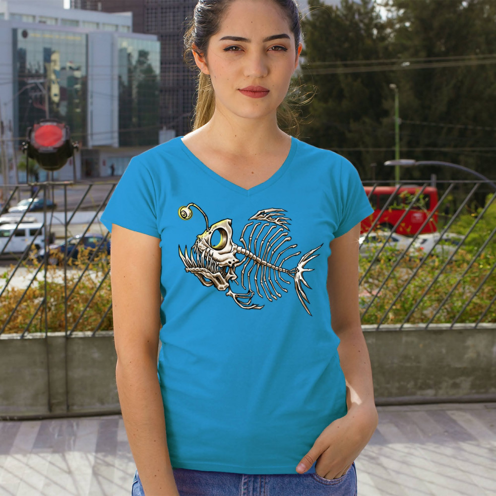 This highly detailed angler fish skeleton design features sharp bones, glowing lure eye, and deep sea terror aesthetic. Perfect for horror fans, marine biology lovers, and ocean adventurers, it combines underwater predator vibes with bone art flair. A great fit for Halloween, dive clubs, and dark sea aesthetics.