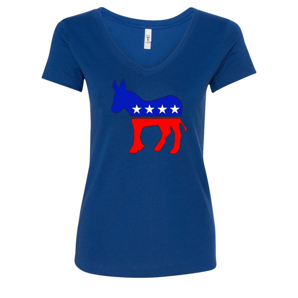 DEMOCRATIC PARTY DONKEY logo women's v-neck t-shirt political liberal left wing royal blue