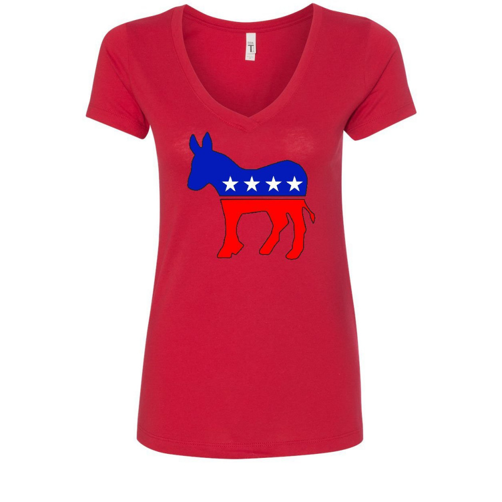 DEMOCRATIC PARTY DONKEY logo women's v-neck t-shirt political liberal left wing red