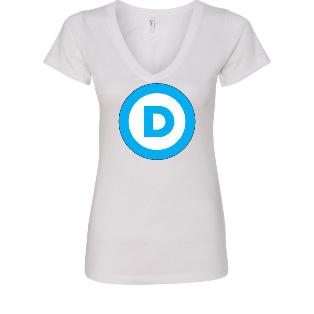 DEMOCRATIC PARTY LOGO women's v-neck t-shirt political 2020 vote blue liberal white