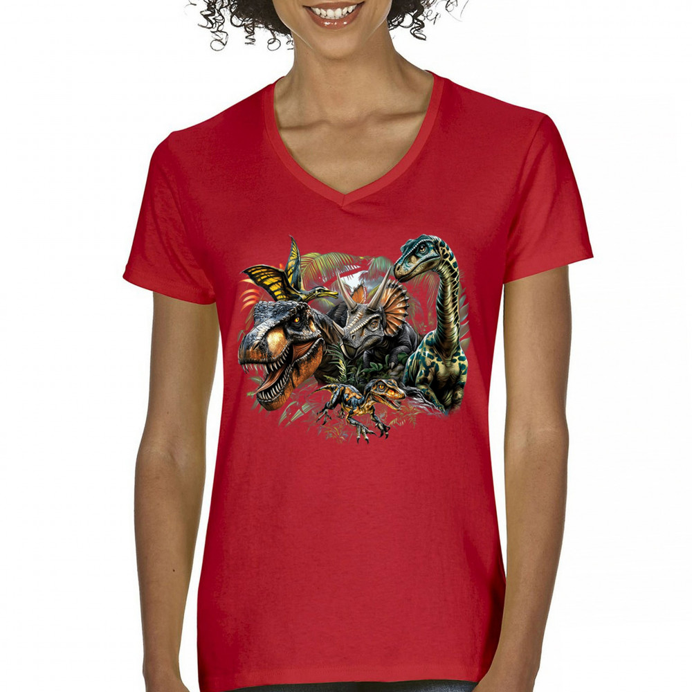 Bold jungle dinosaur design featuring t rex, triceratops, raptor, brachiosaurus, and pteranodon. Perfect for parties, digs, and dino fans.