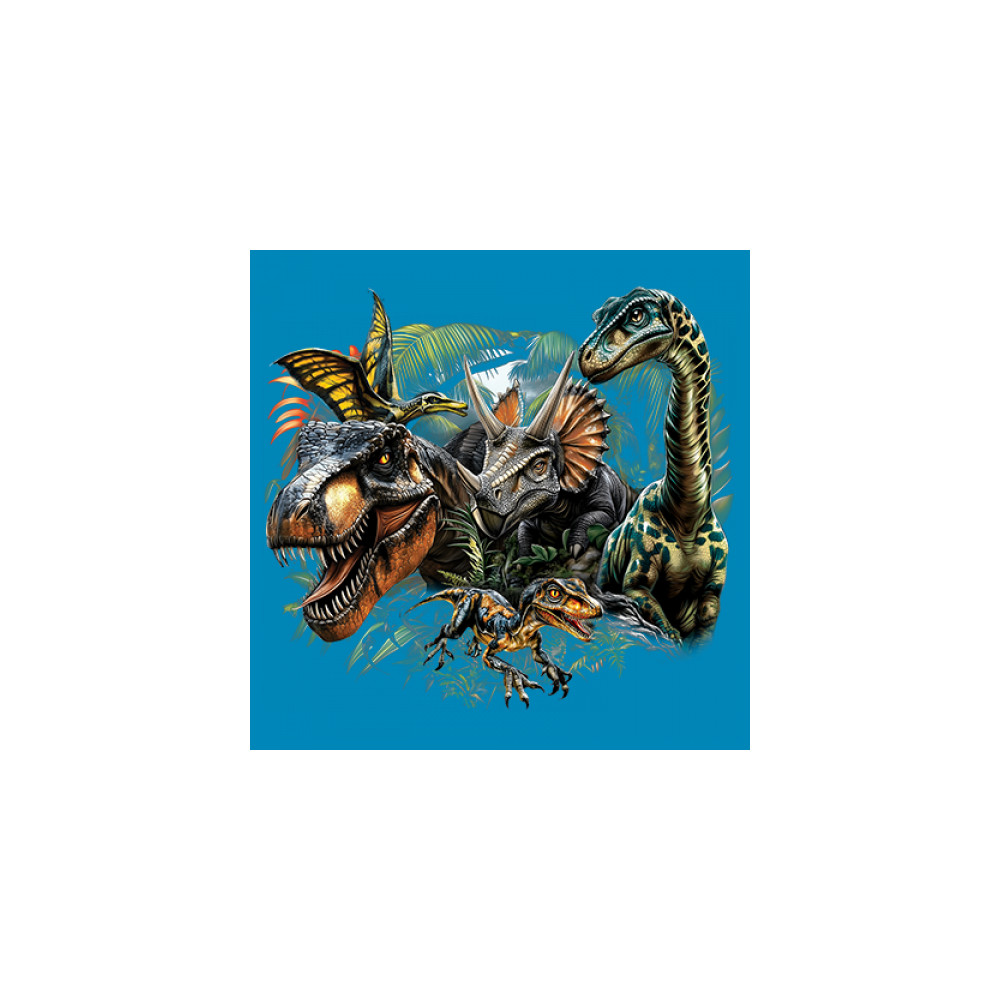 Get prehistoric with this electrifying design featuring a full dino squad in vibrant jungle detail. Includes t rex, triceratops, raptor, brachiosaurus, and pteranodon, all surrounded by tropical foliage. A perfect pick for dinosaur fans, fossil hunters, Jurassic birthday parties, or anyone who loves bold, wild, nature-themed art.