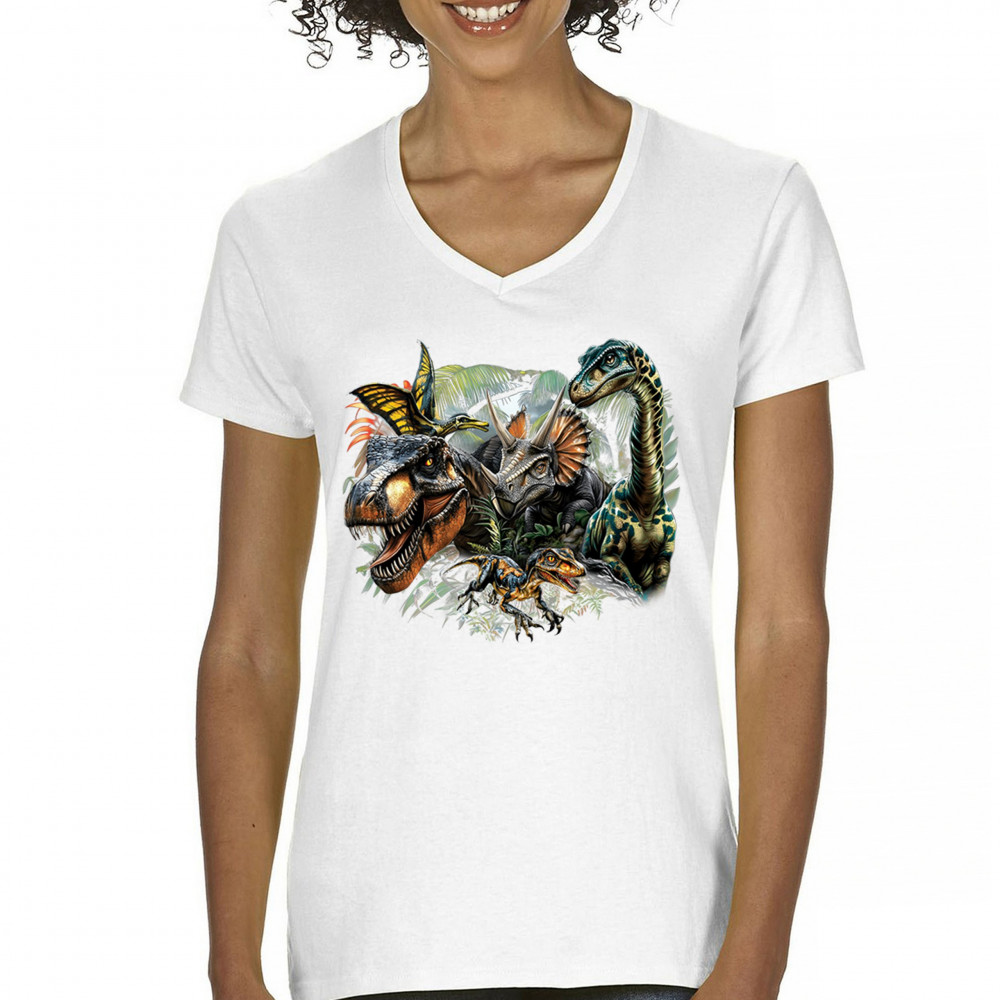 Bold jungle dinosaur design featuring t rex, triceratops, raptor, brachiosaurus, and pteranodon. Perfect for parties, digs, and dino fans.