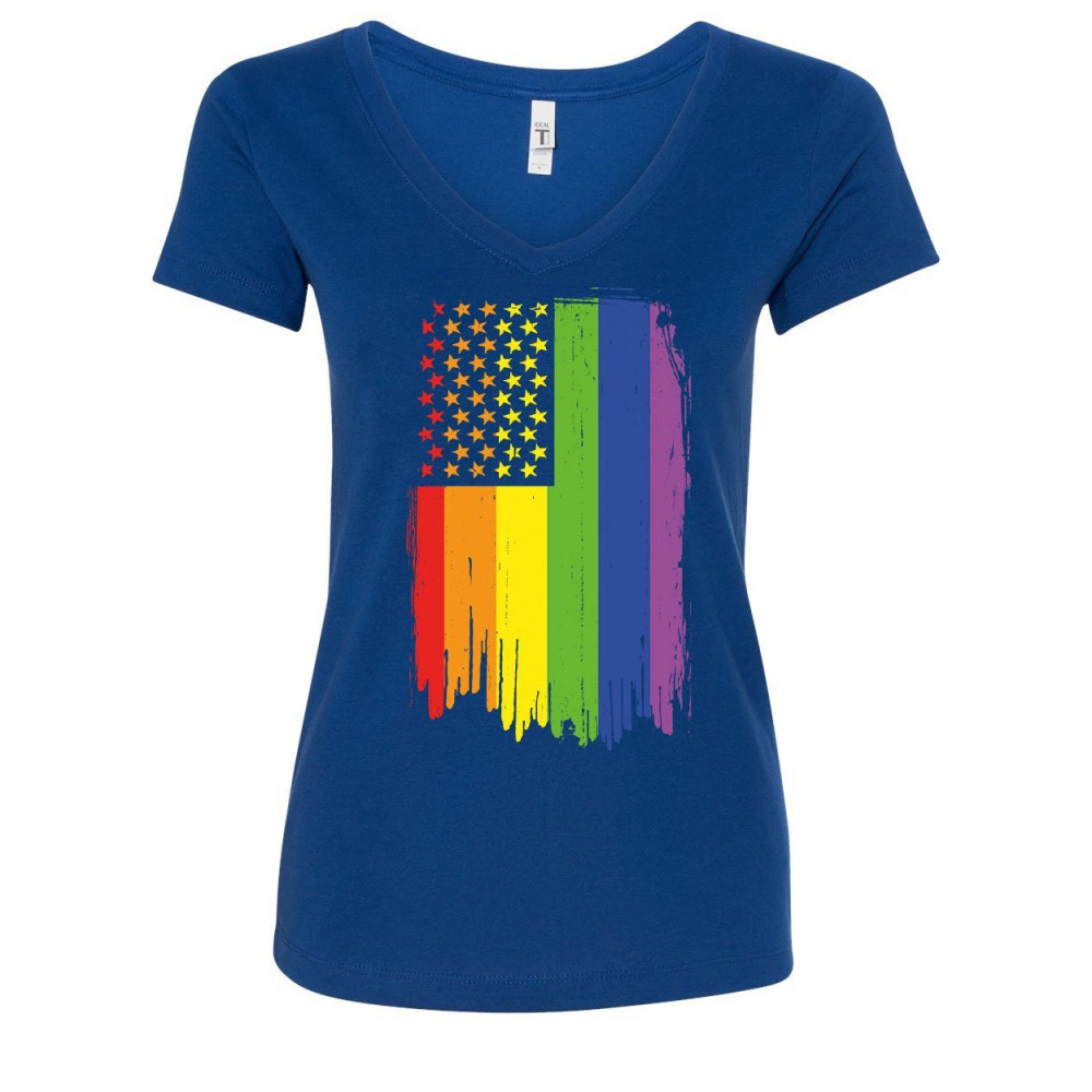 DISTRESSED GAY PRIDE RAINBOW FLAG v-neck t-shirt lgbtq love wins royal blue