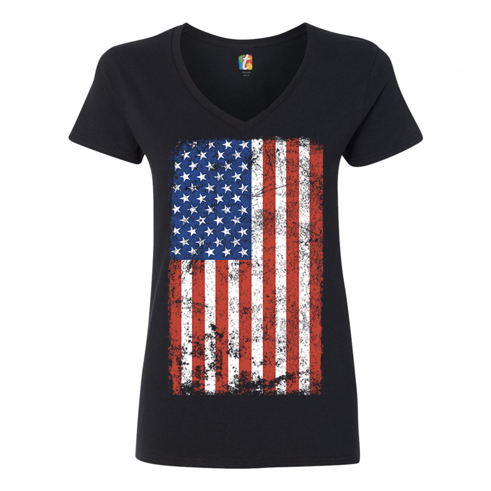 DISTRESSED GRUNGE AMERICAN FLAG women's v-neck t-shirt vintage 4th of july tee black