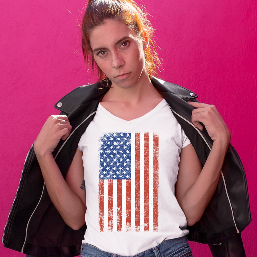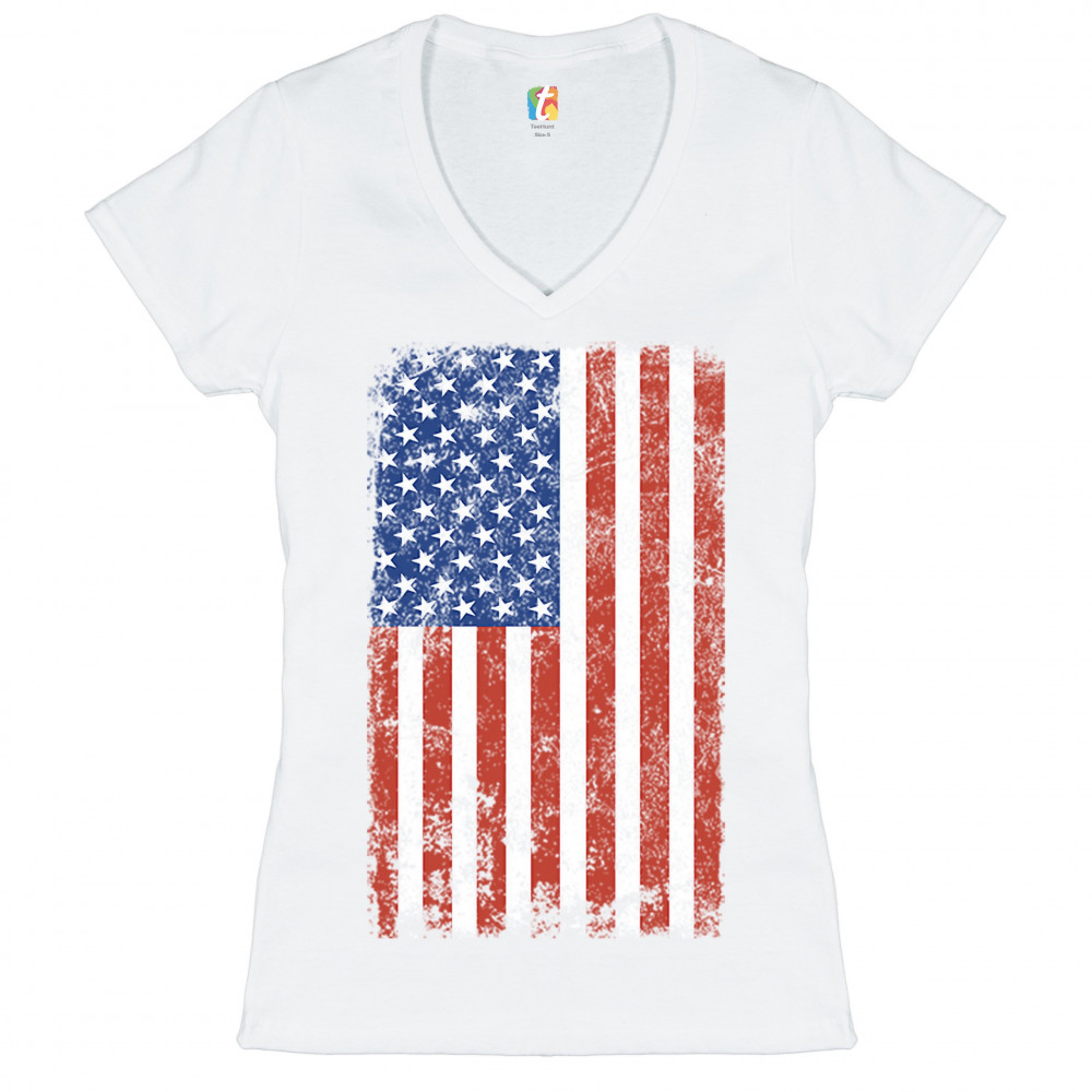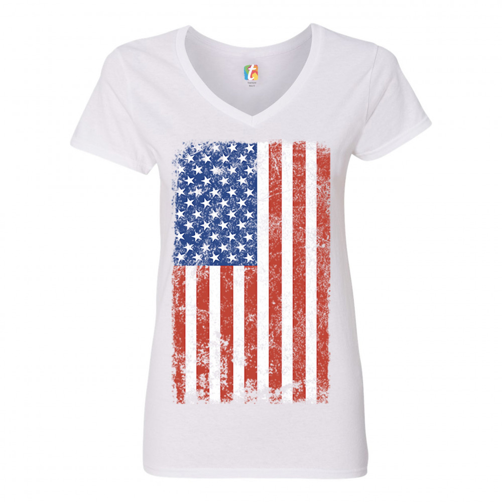 DISTRESSED GRUNGE AMERICAN FLAG women's v-neck t-shirt vintage 4th of july tee white