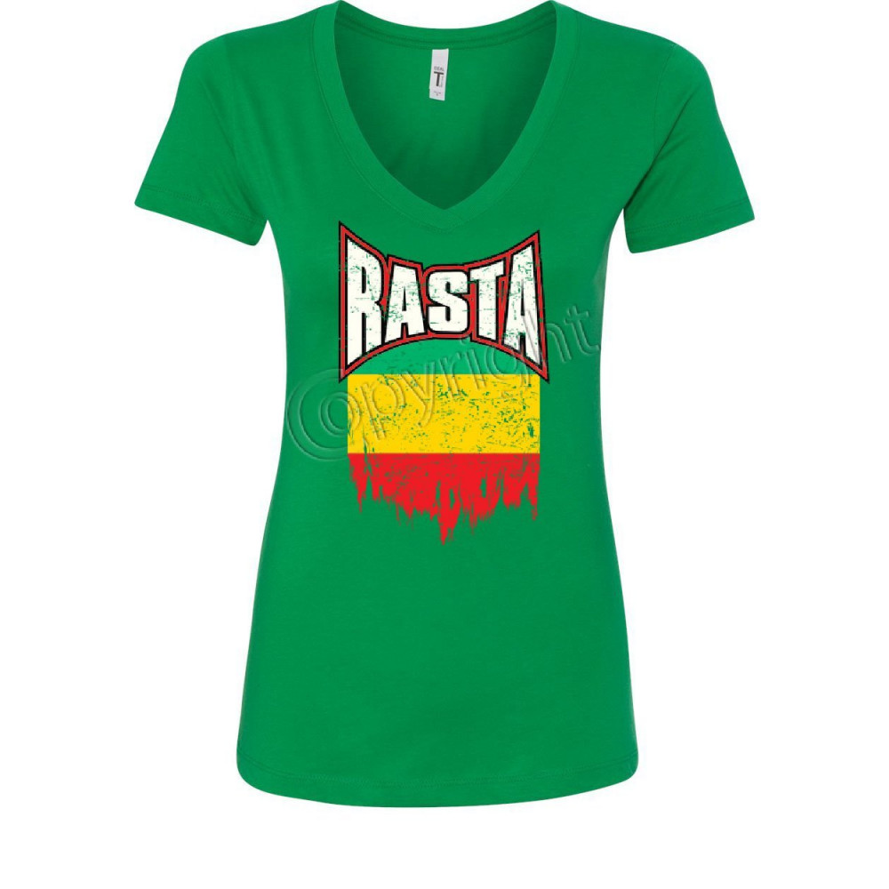 DISTRESSED RASTA FLAG women's v-neck t-shirt smoking 420 reggae marijuana weed green