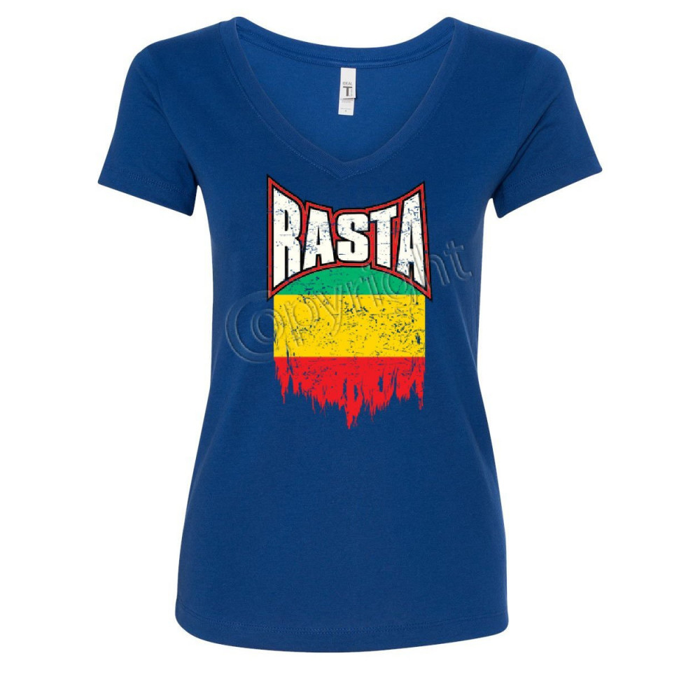 DISTRESSED RASTA FLAG women's v-neck t-shirt smoking 420 reggae marijuana weed royal blue