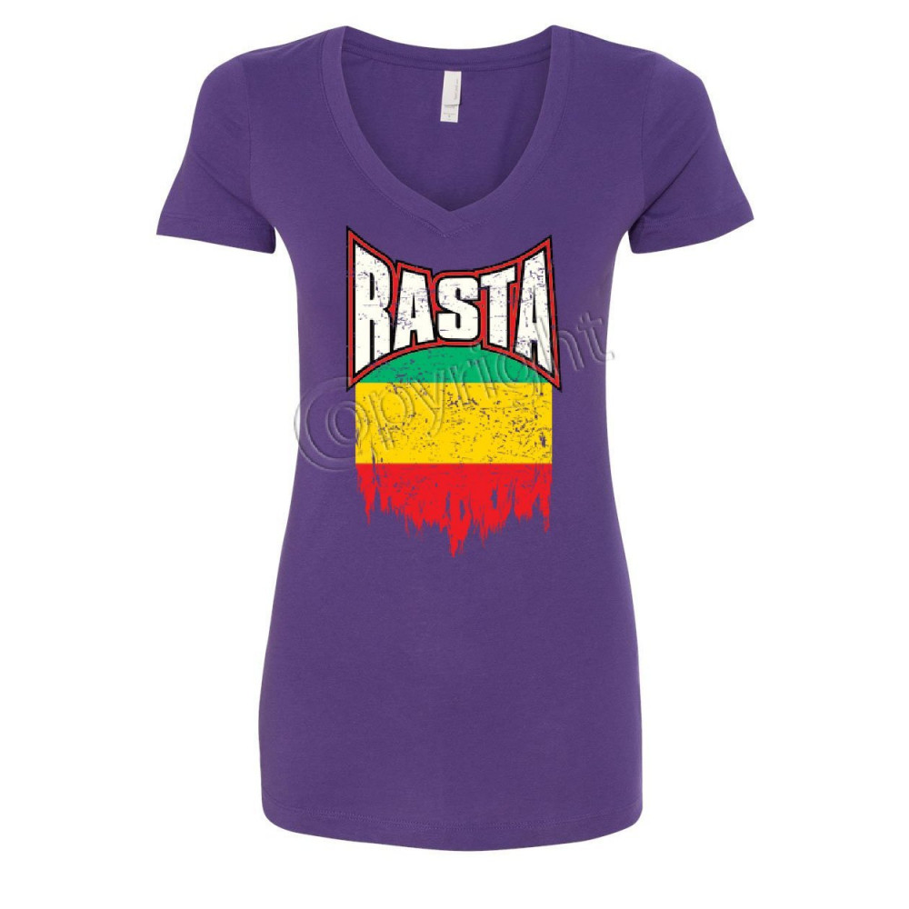 DISTRESSED RASTA FLAG women's v-neck t-shirt smoking 420 reggae marijuana weed purple