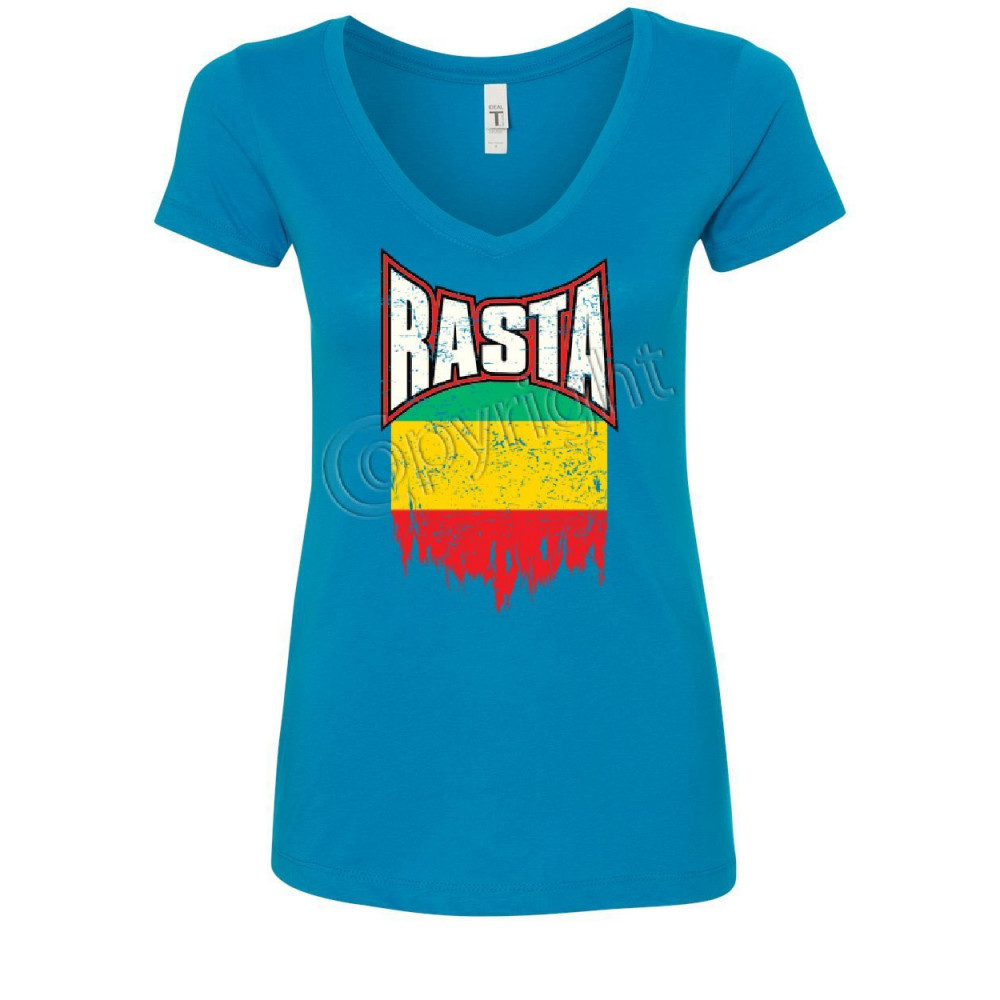 DISTRESSED RASTA FLAG women's v-neck t-shirt smoking 420 reggae marijuana weed turquoise