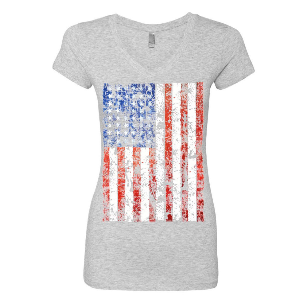 DISTRESSED US FLAG v-neck t-shirt american flag gray
