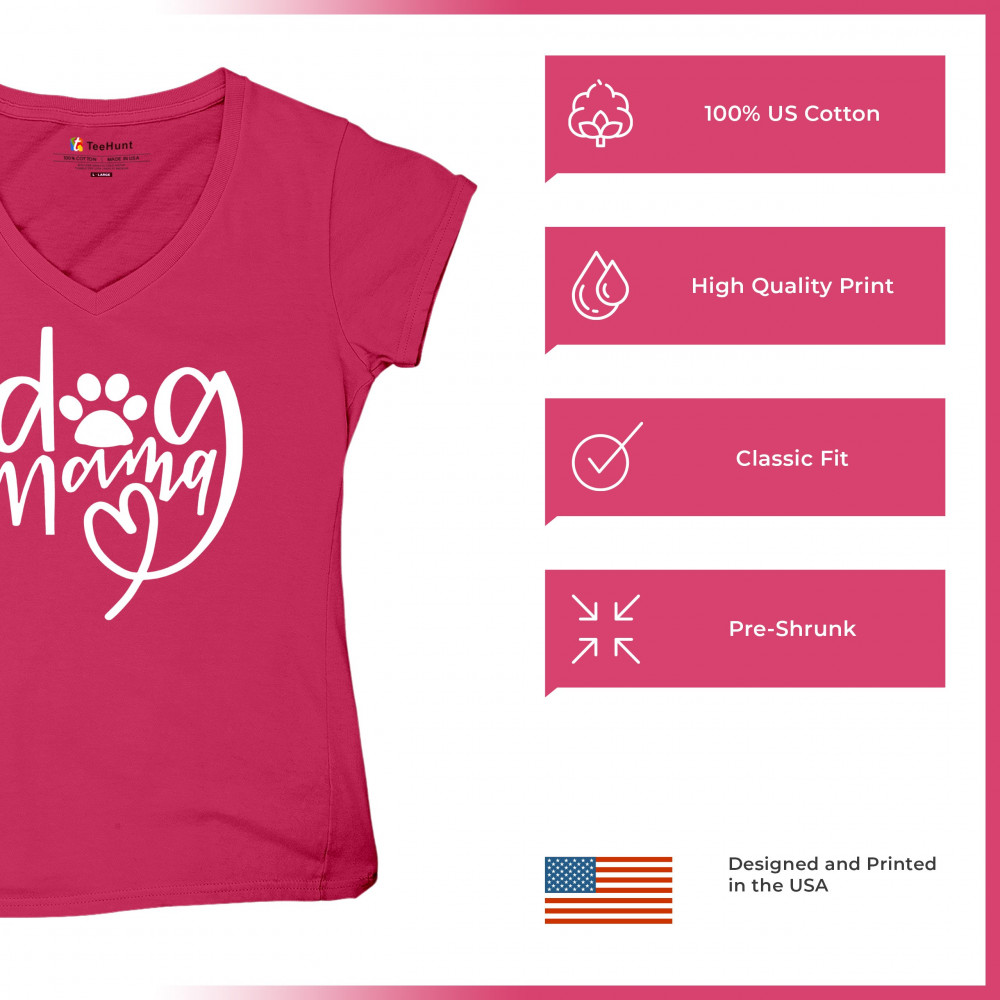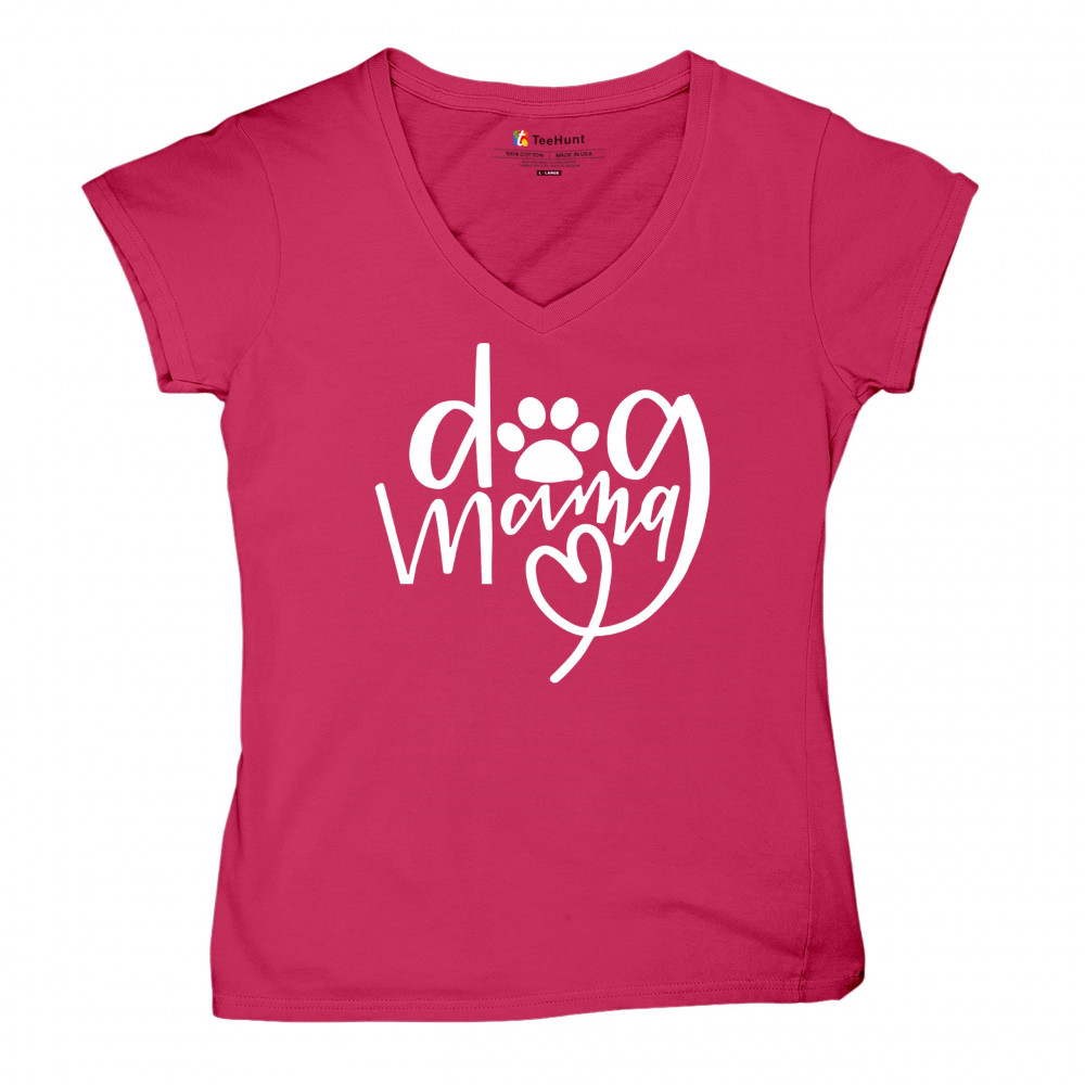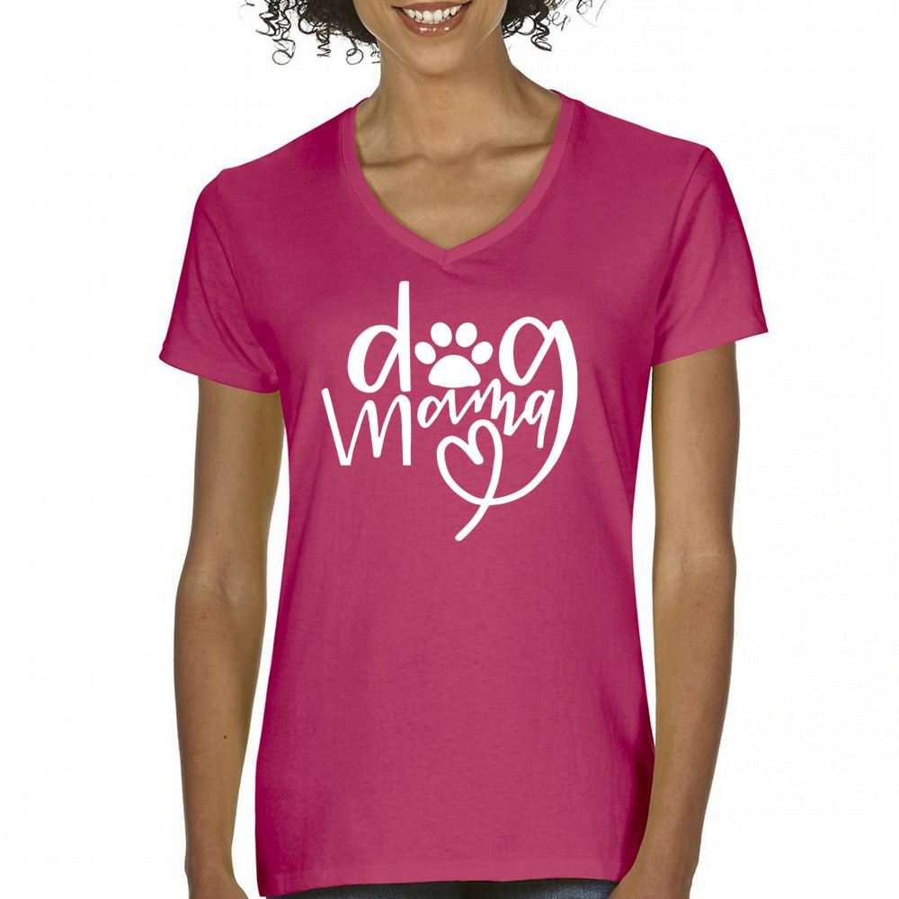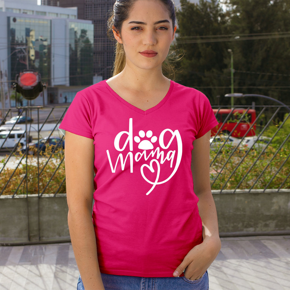 DOG MAMA FUNNY MOTHER'S DAY women's v-neck t-shirt puppy breed adopt a pet tee pink